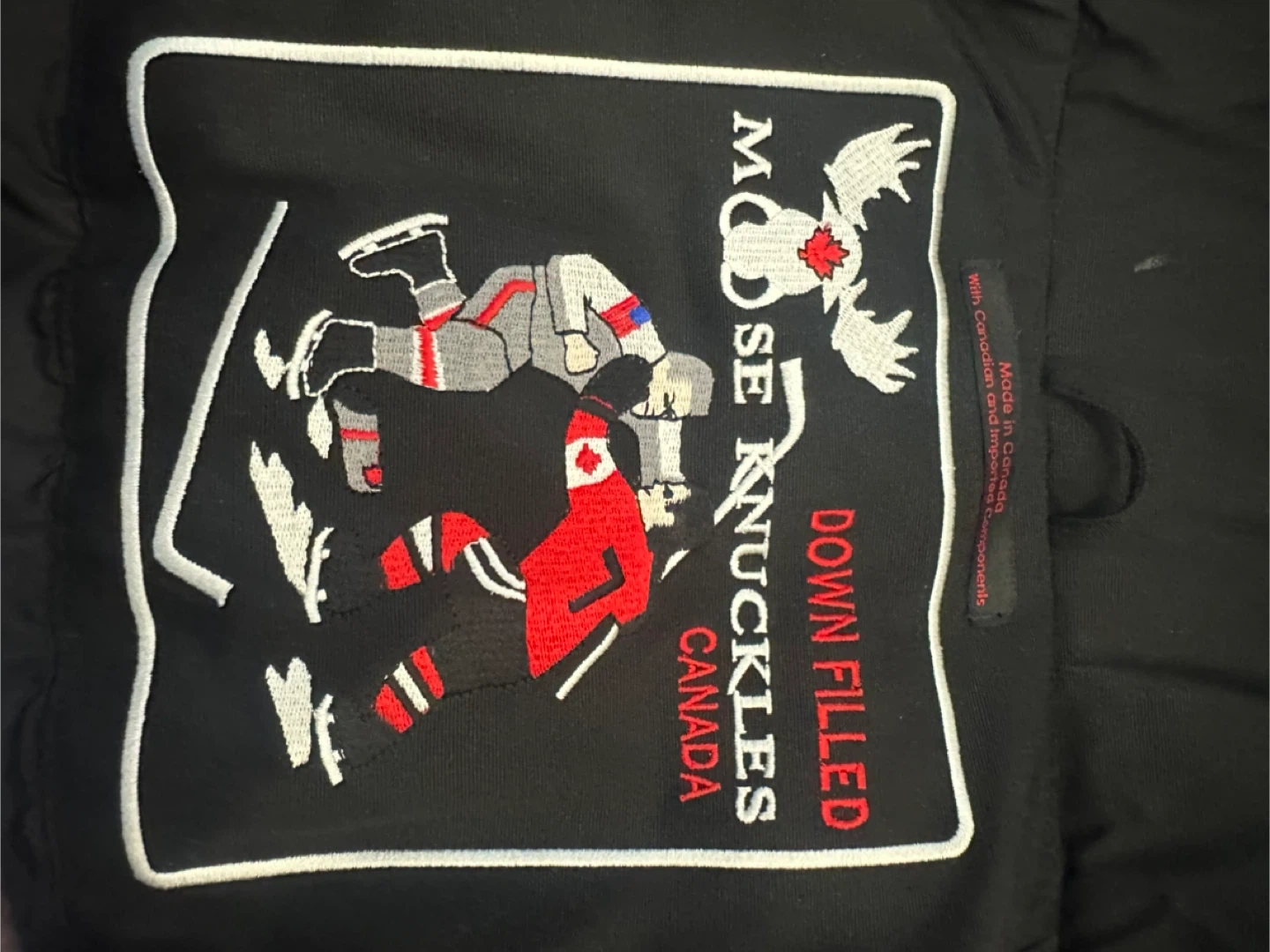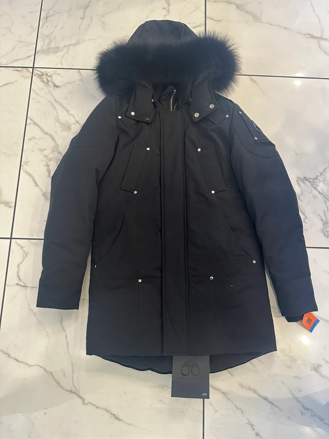 10Selling a Moose Knuckles down-filled parka in black. It's brand new ready to keep you warm this winter! The parka features the iconic Moose Knuckles logo are a stylish design. Made in Canada with Canadian and imported components. everything + tags included!