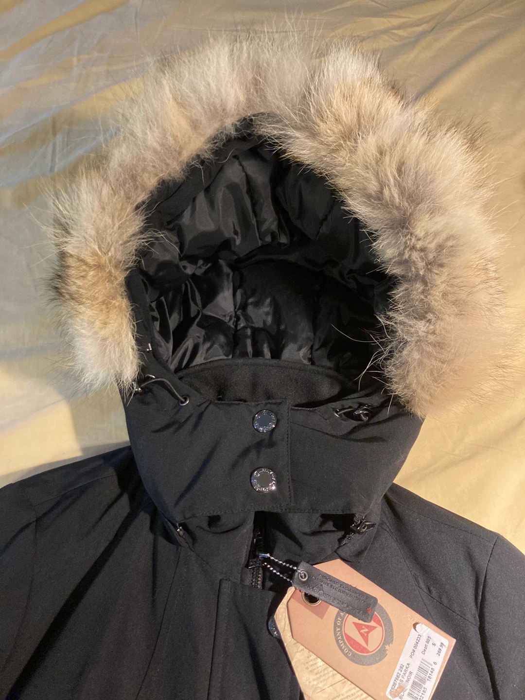 927Moose Knuckles parka designed exclusively for Hudson's Bay Company! New with tags. This stylish black parka is a size small and features a fur-trimmed hood to keep you warm during those chilly Canadian winters. $200 (Originally bought for $269.99) Women’s size small