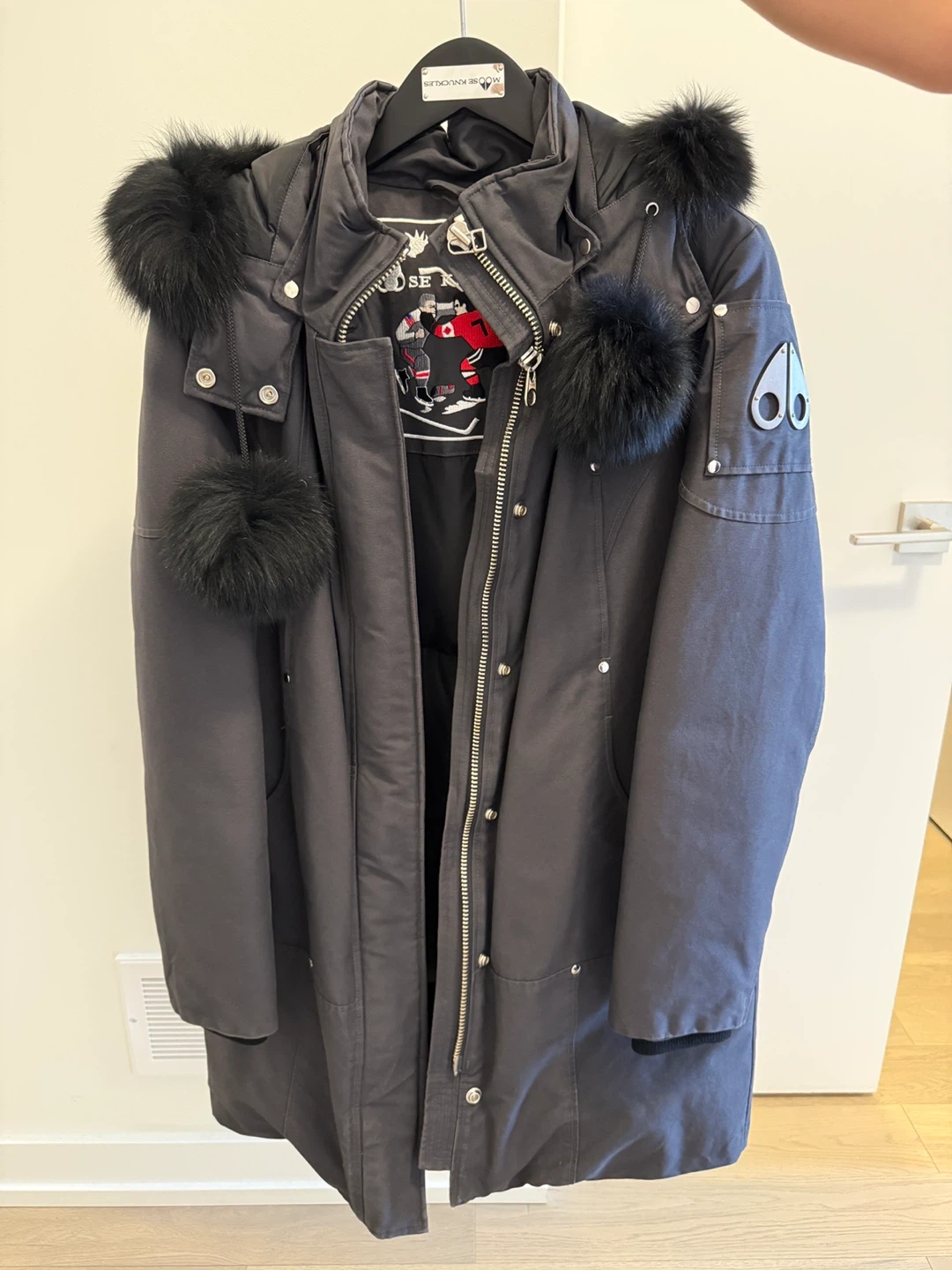 39Selling a Moose Knuckles parka in size L. It's in great condition and ready for the cold weather! The parka features a stylish design with fur trim on the hood and pom poms. It's a warm and fashionable choice for winter. Used it for one season less than 10 times
