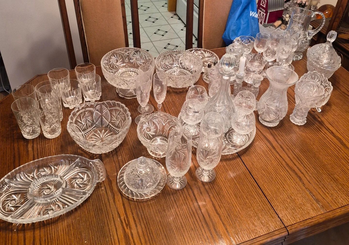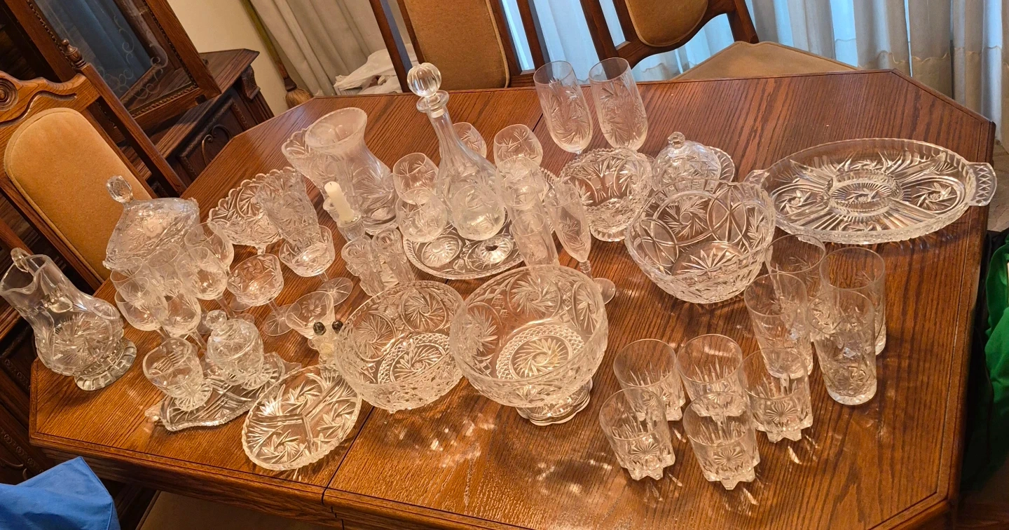 Large Crystal Set - Vintage Pinwheel Cut Glass