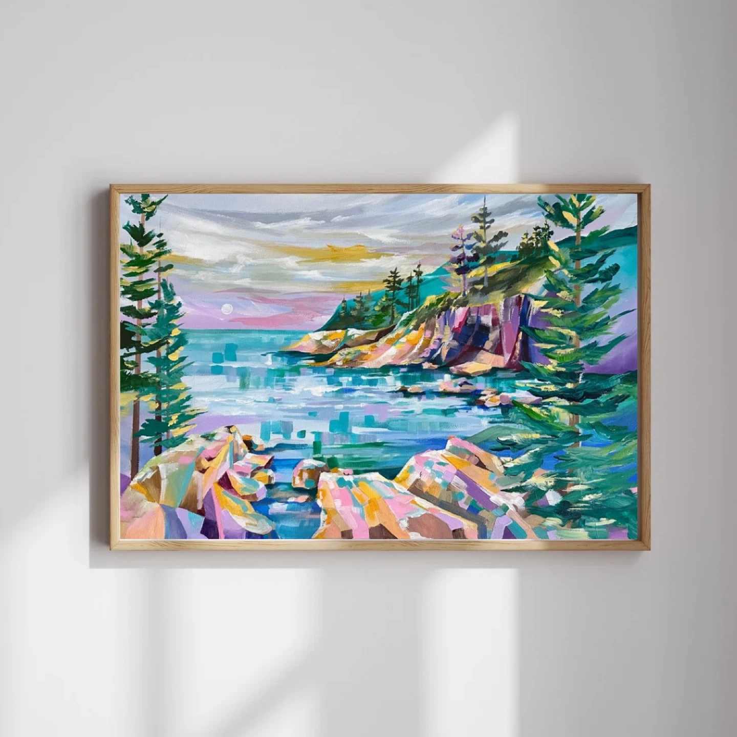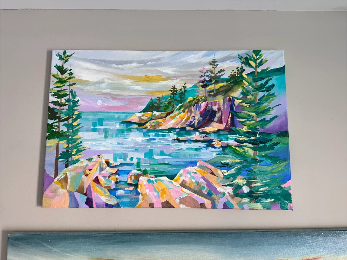 15Original Acrylic Painting “Morning by the Shore” 16x24inch This piece captures the serene beauty of a coastal morning. Gentle sunlight breaks through the clouds, reflecting on the rippling water, while vibrant brushstrokes bring the rocky cliffs and pine trees to life. The palette combines soft pastels with bold accents, creating a balance between calmness and energy. ✨ Hand-painted, one of a kind ✨ 16x24 inches on canvas ✨ Ideal for home or office décor ❗️ the painting is sold without a frame Are you looking for a unique gift or a beautiful piece of art to decorate your home? I create custom paintings: Acrylic works on canvas Landscapes, portraits, abstract art Inspired by your ideas or my creative vision