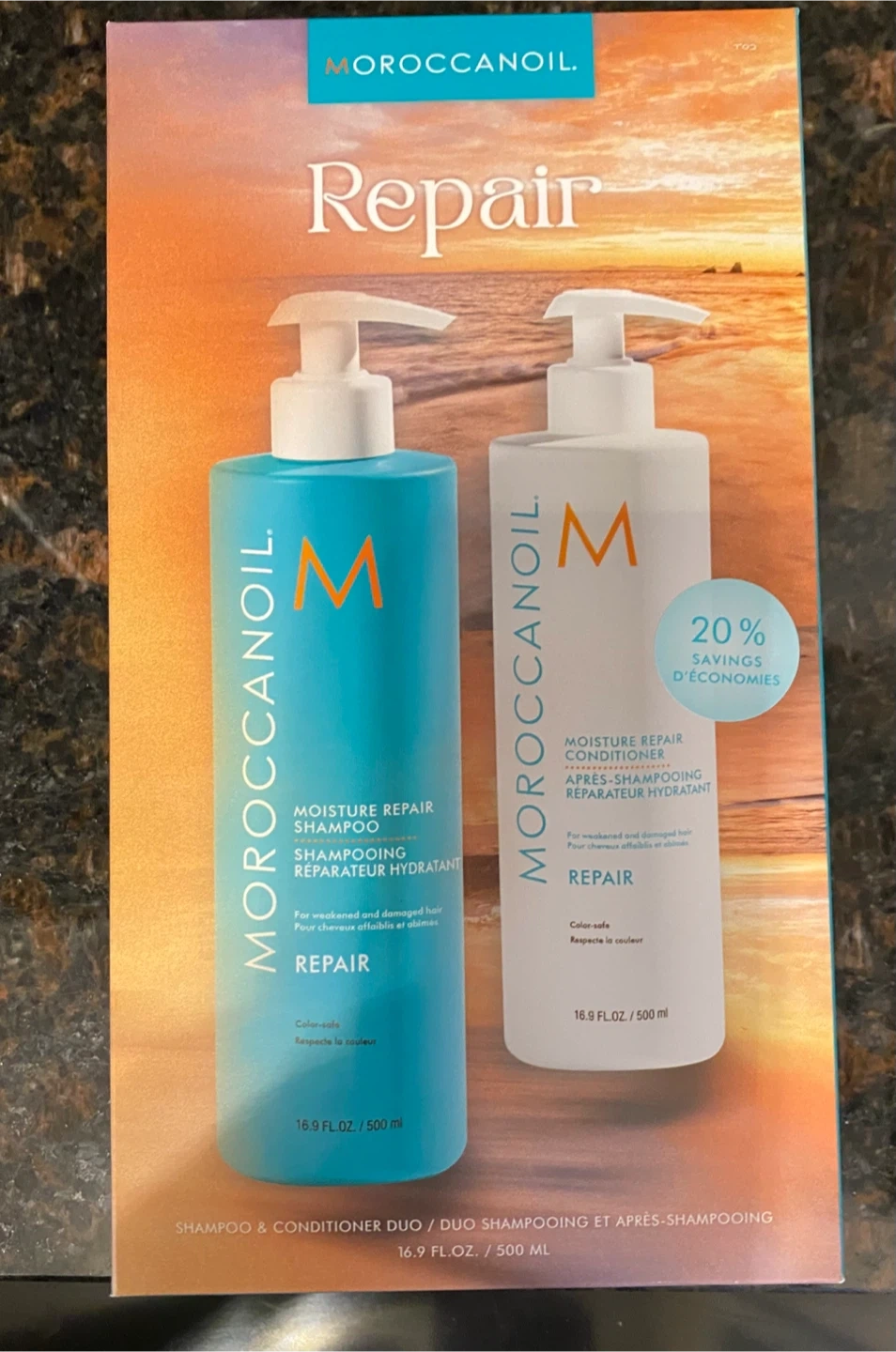 66Selling a Moroccanoil Repair Shampoo and Conditioner duo! This set includes: - Moisture Repair Shampoo (16.9 fl oz / 500 ml) - Moisture Repair Conditioner (16.9 fl oz / 500 ml) Perfect for weakened and damaged hair, this duo will leave your hair feeling hydrated and healthy