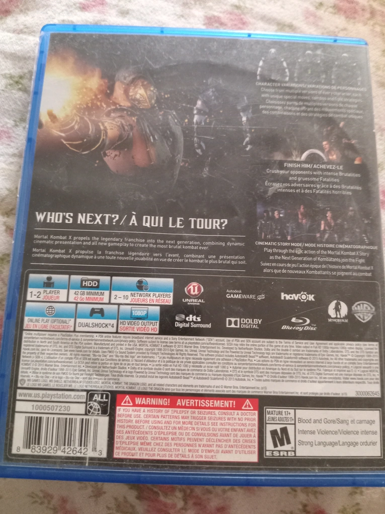 Selling Mortal Kombat X for the PlayStation 4 (PS4). Rated M for Mature audiences (17+)