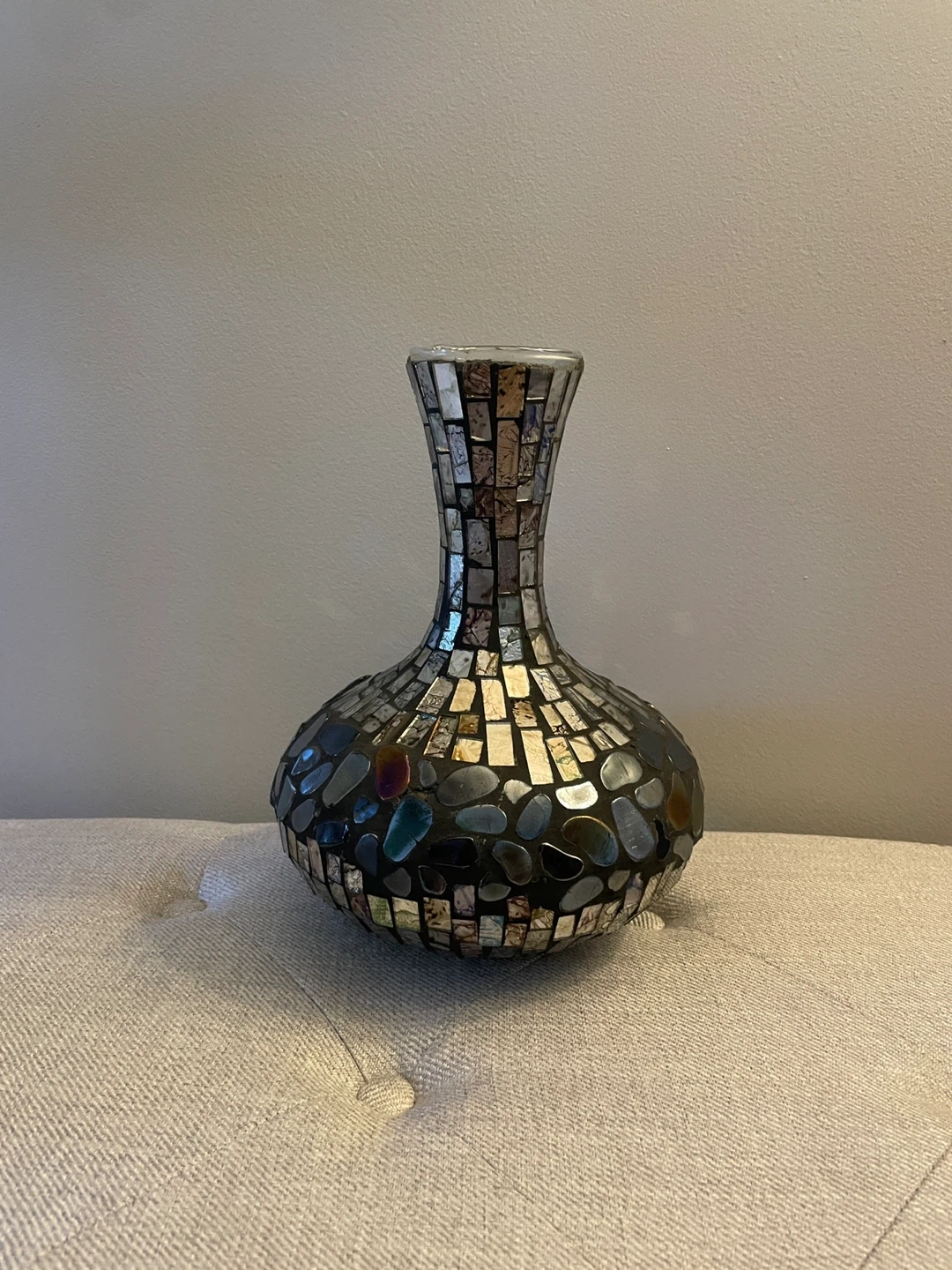 Beautiful mosaic vase, perfect for adding a touch of sparkle to your home! It's in great shape and ready for a new home