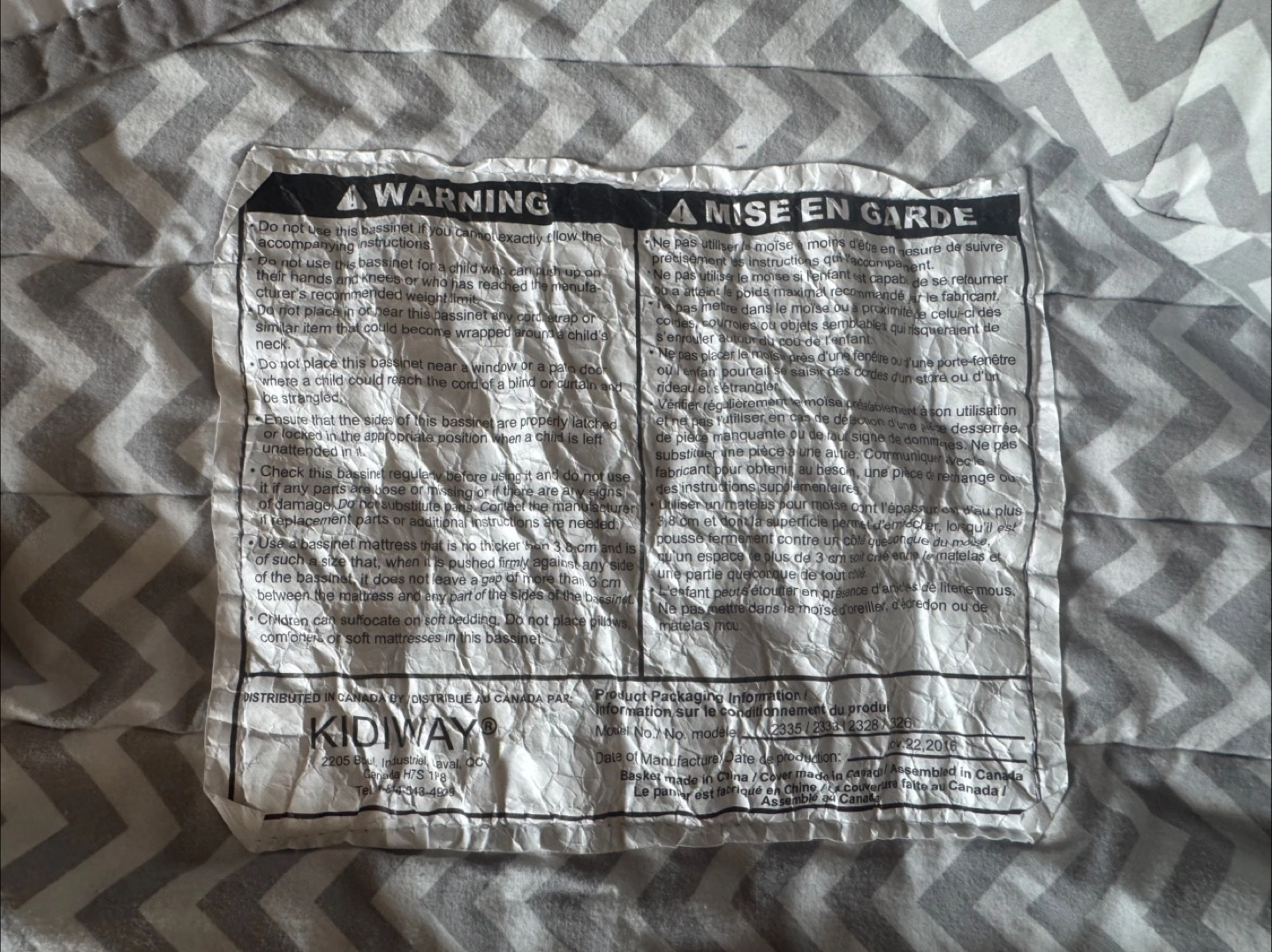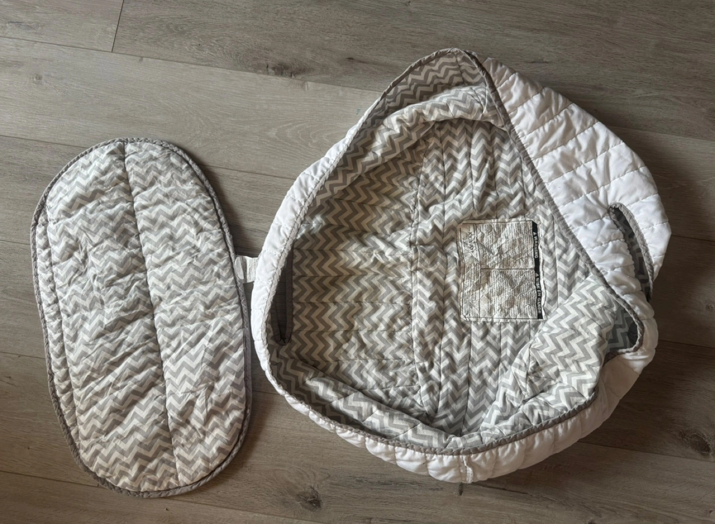 15Two piece bedding set for Moses basket bassinet (bedding only – basket and stand not included; fourth picture is only intended to show how it fits). Kidiway brand.