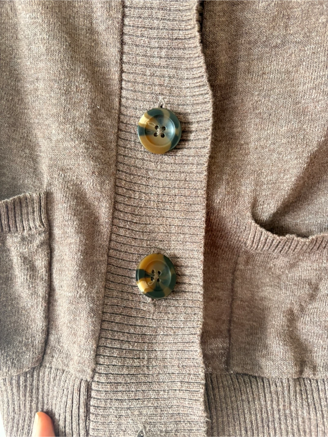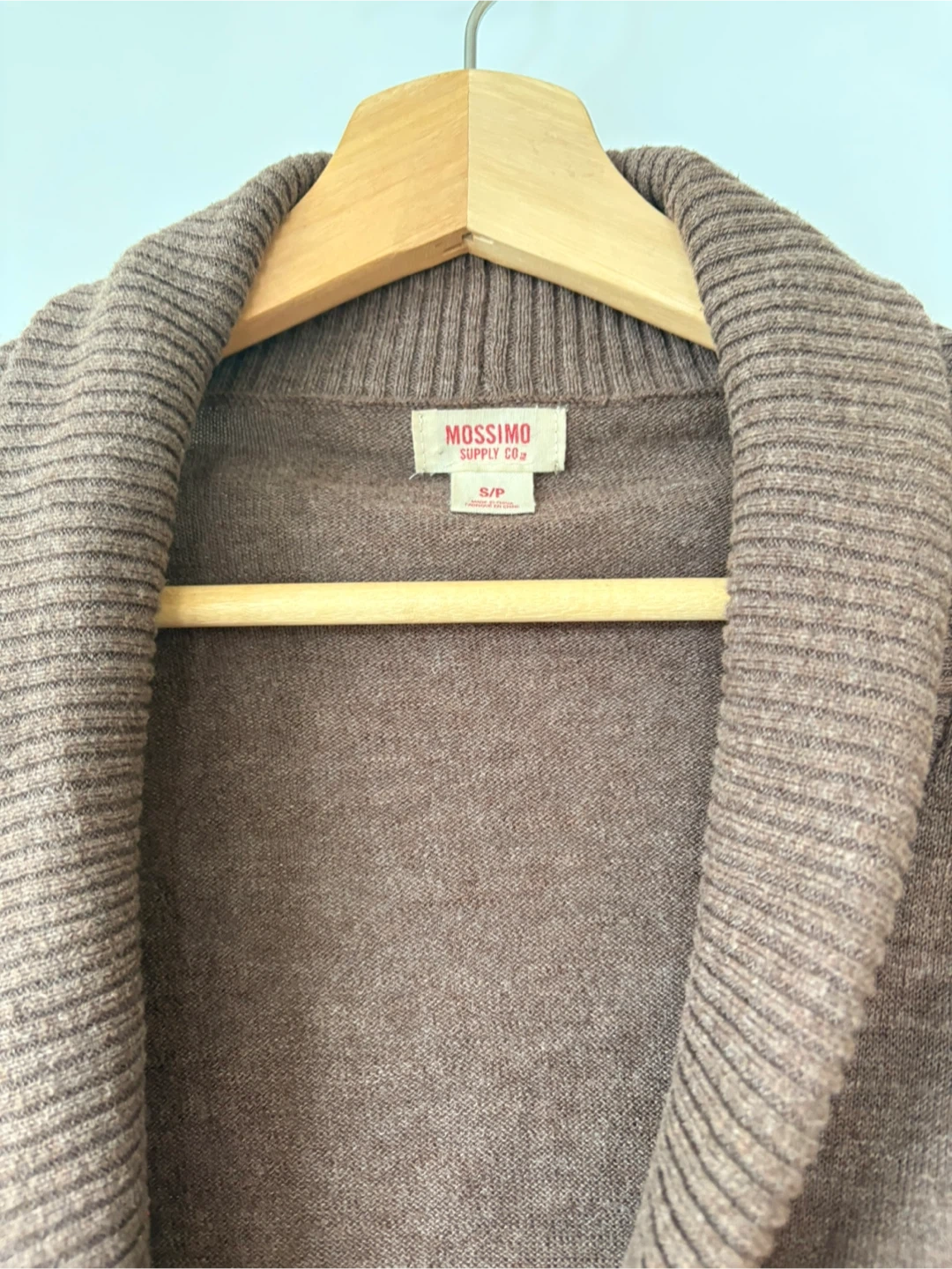 85A cozy brown cardigan from Mossimo Supply Co. in size small/petite! It features a shawl collar, button-down closure, and two front pockets. Perfect for layering on those chilly days