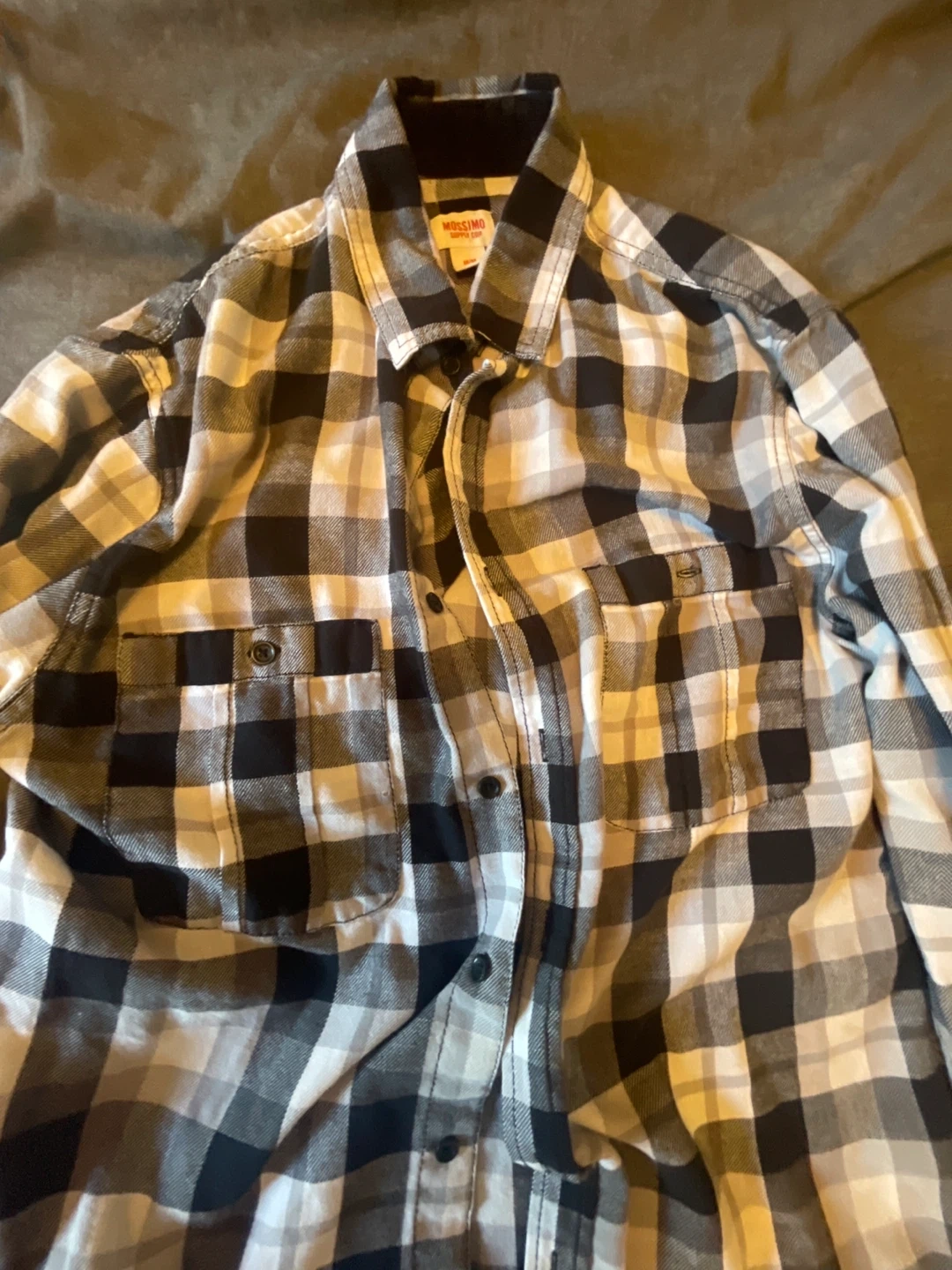 Mossimo Supply Co flannel shirt size medium. Classic black and white plaid pattern. Message me if you are interested in purchasing