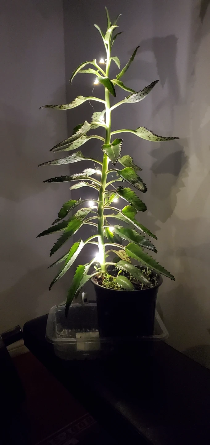 139I'm selling a Mother of Thousands plant. It comes with battery operated string lights to add a cozy touch to your space. The plant is healthy and ready to brighten up your home! Nice to put in the side table that needs a little light. Indoor air quality gets a boost with the Mother of Thousands. It's like a living air filter, scrubbing the air clean of impurities and gifting you with a breath of fresh air—literally.
