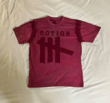 Selling an Motion T-shirt. It's a unique piece with the word 'MOTION' printed on the front and a cool design on the back. Great for casual wear or as a statement piece!