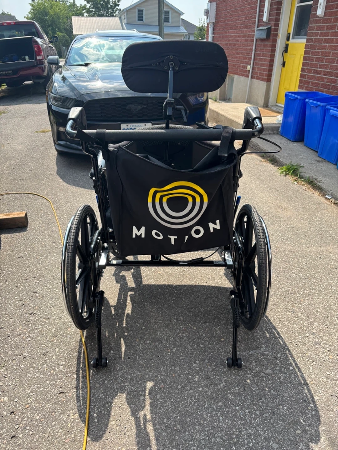10Selling a Motion wheelchair in great condition! It comes with a ROHO cushion for extra comfort. The wheelchair also features a convenient bag at the back for storage. It’s ready to go to a new home!