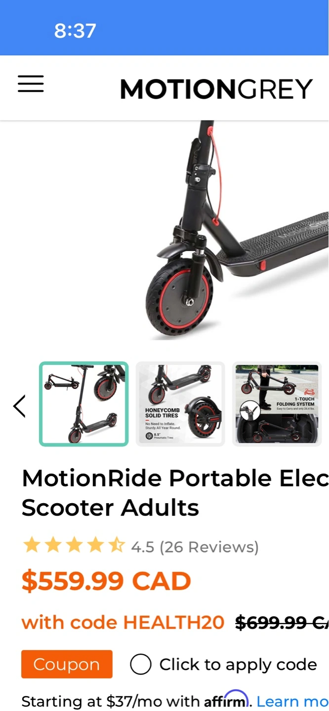 34Motion grey electric scooter Barely used Max speed 45kph Max range 35-40km Works perfectly 2 months old Has 1 year warranty Got as a gift upgrading to a Ebike for the summer Open to offers Need gone ASAP Dm me for details