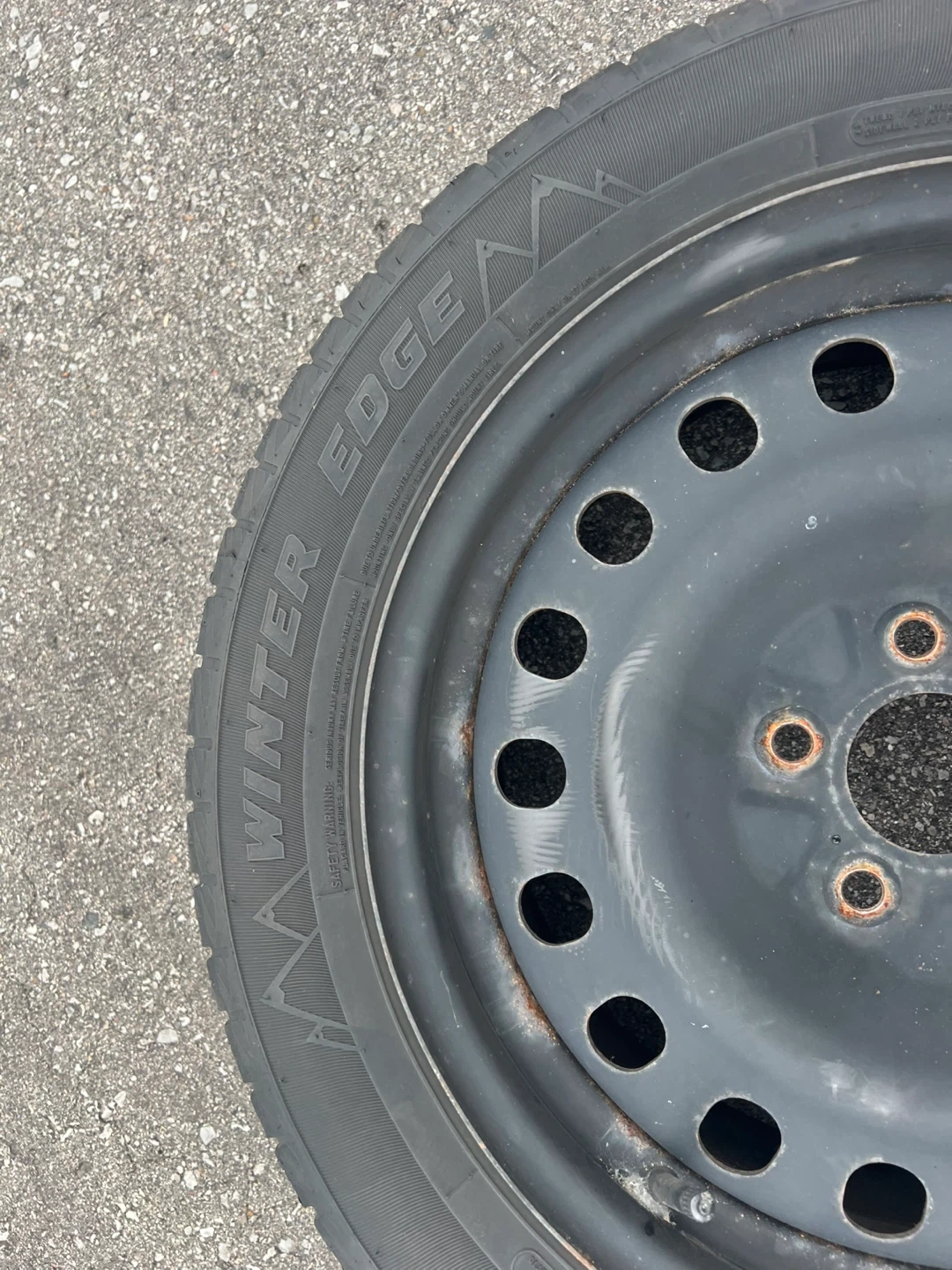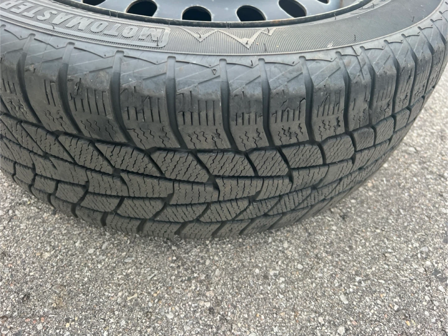 Selling a set of Motomaster Winter Edge tires with rims + nuts included. Gently used for only 2 winters, still lots of tread left. Came off a Toyota Camry, but may fit other vehicles as well. Ready to mount and drive. Price negotiable.