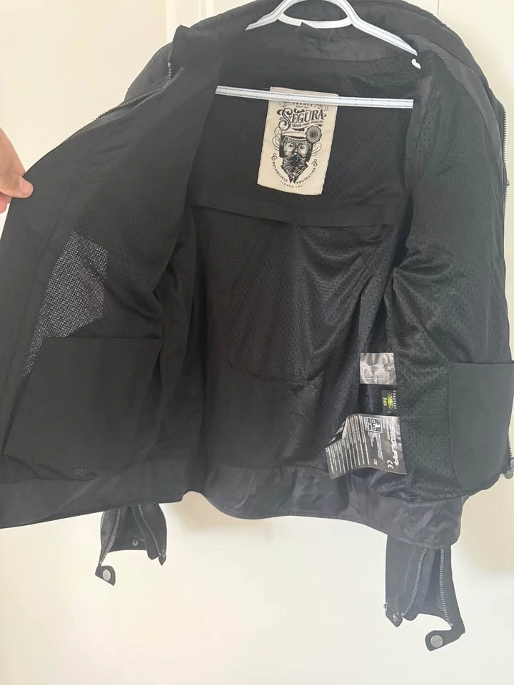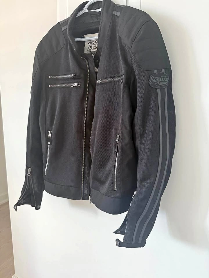 10Lightweight, robust and extremely stylish! Due to its high breathability the Segura Ventura Vented motorcycle textile jacket is the ideal companion in summer. Features: Fibretech 600D Tough mesh material Body Fit Adjustable at waist by press stud fastener Adjustable at sleeve by zipper and press stud fastener 2x Side pockets with zipper 3x Breast pockets with zipper 2x Inside pockets Padded seams Non-removable hard mesh lining adjustable Alpha elbow protectors Alpha shoulder protectors back protector included