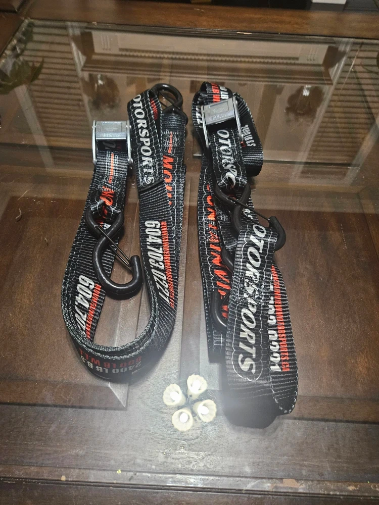 26Selling a pair of Motorsports ratchet tie-down straps. They look to be in good condition and ready to use for securing your gear. Great for trailers and trucks!