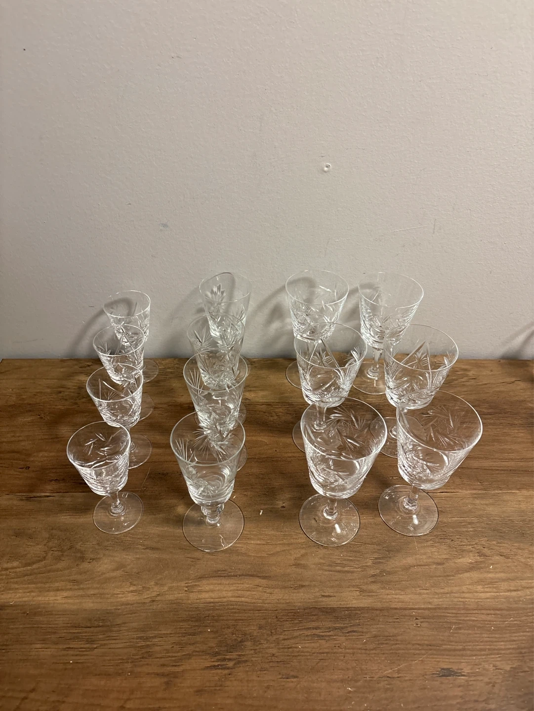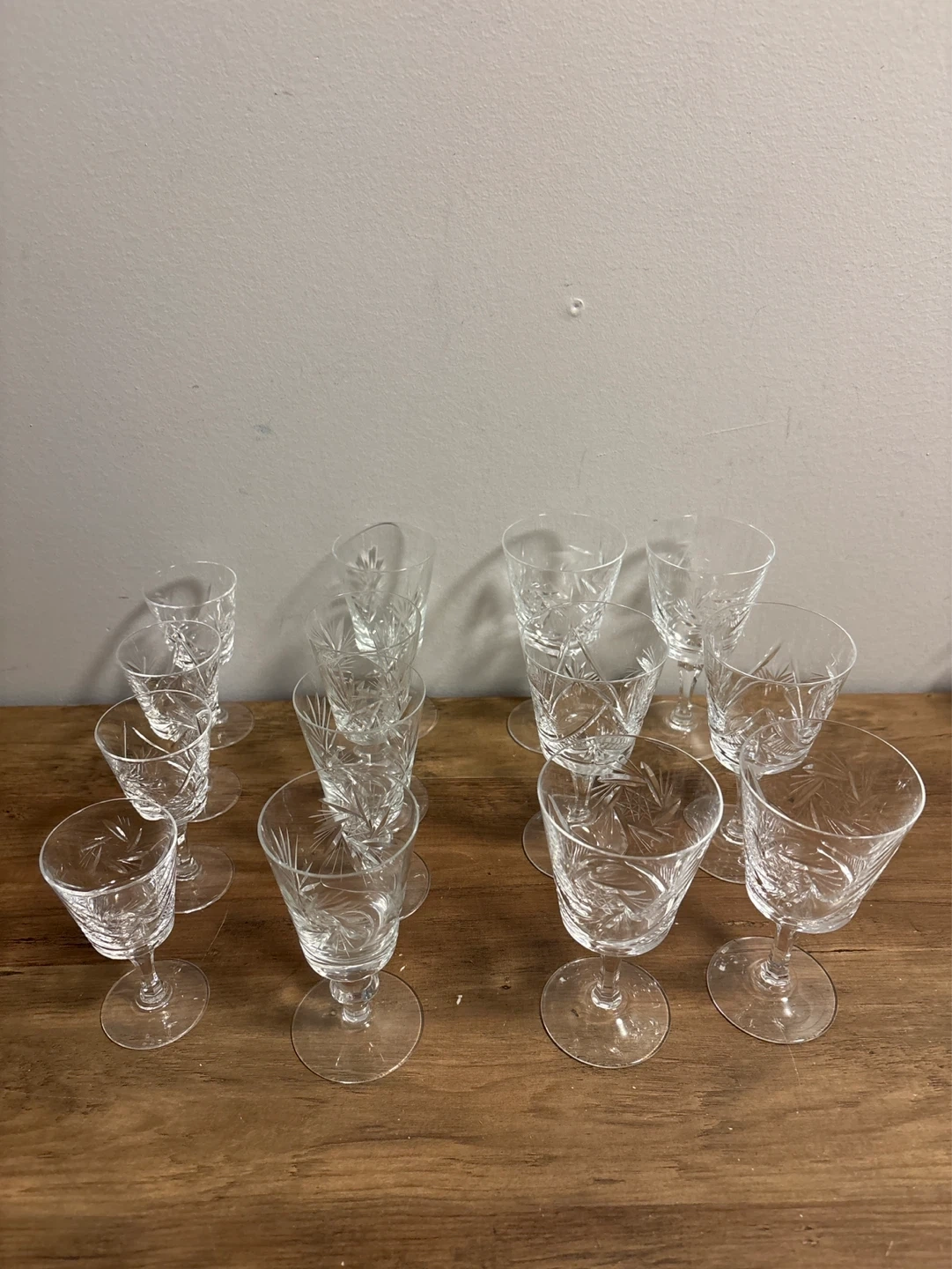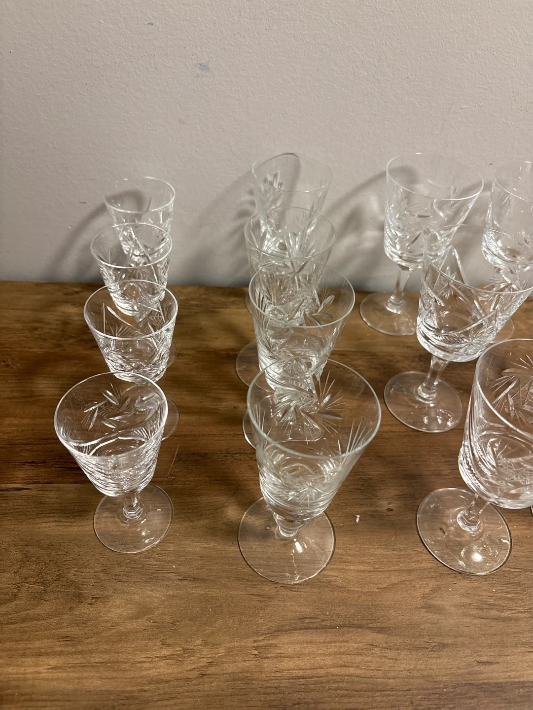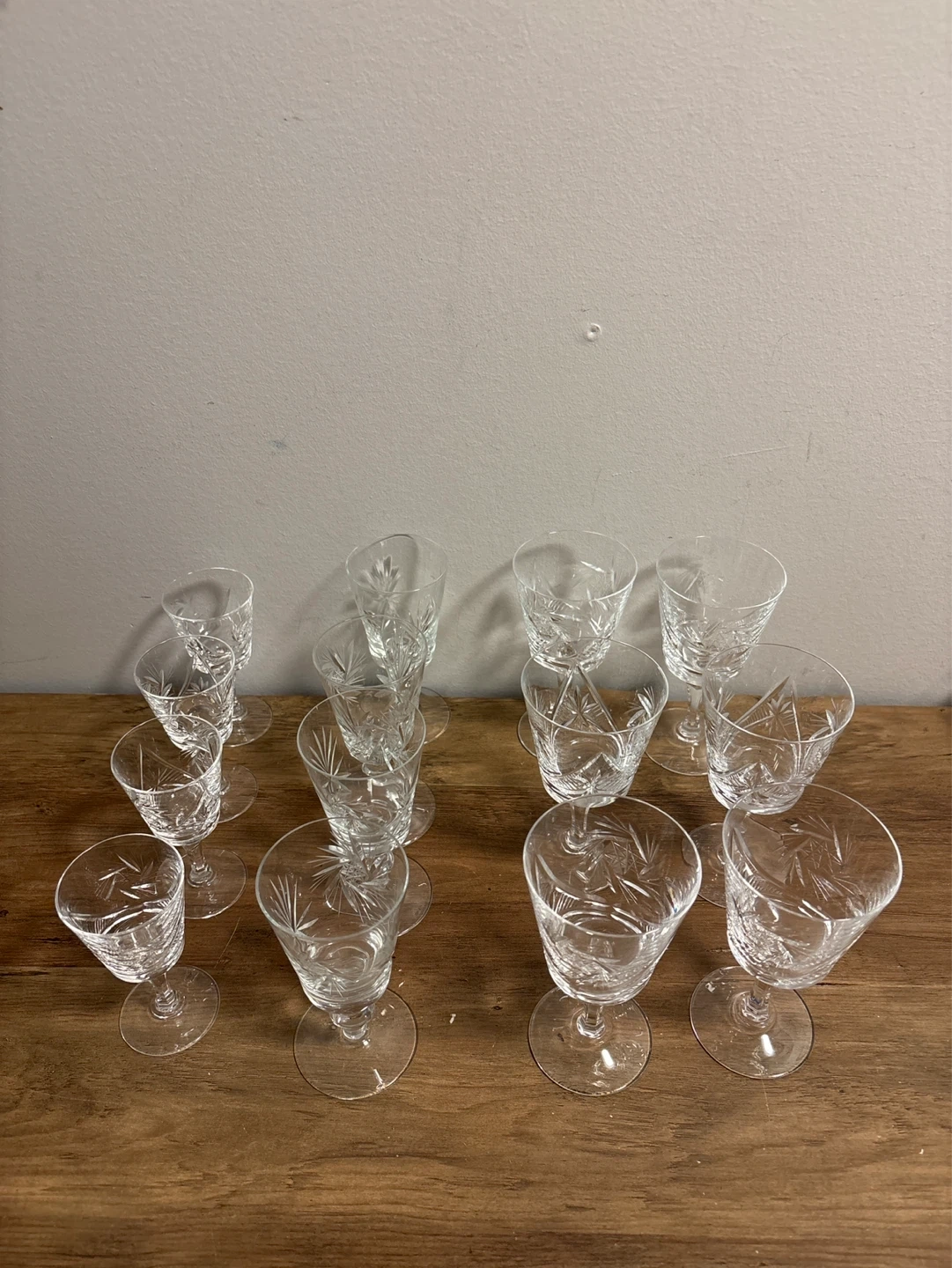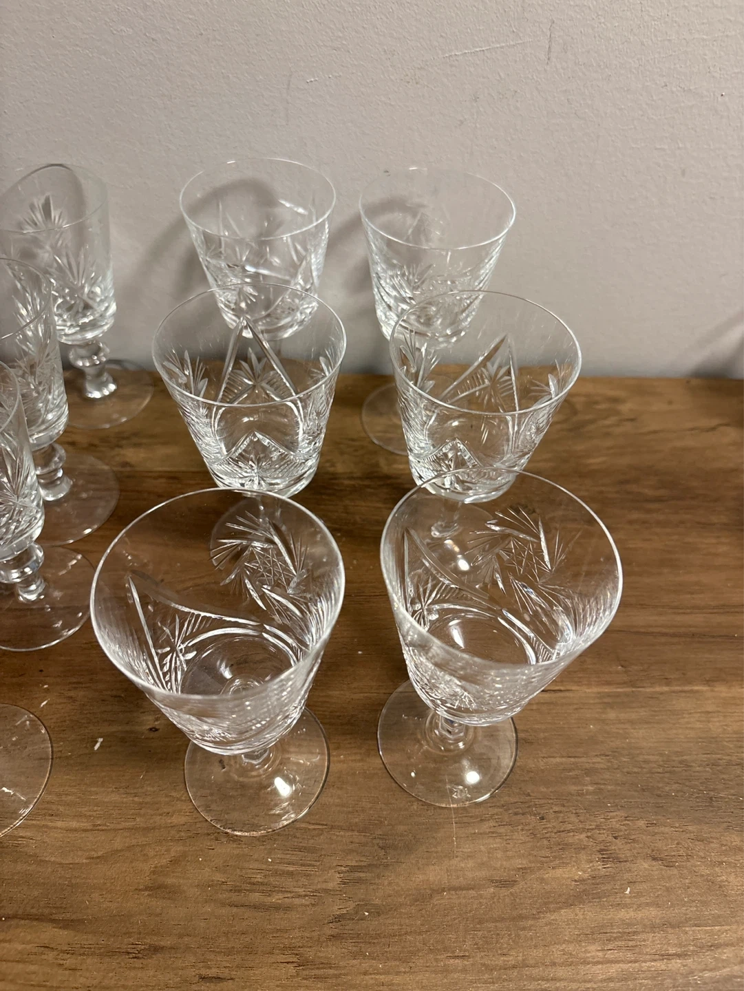 Set of vintage 14 Crystal Cut Glass Wine Glasses
