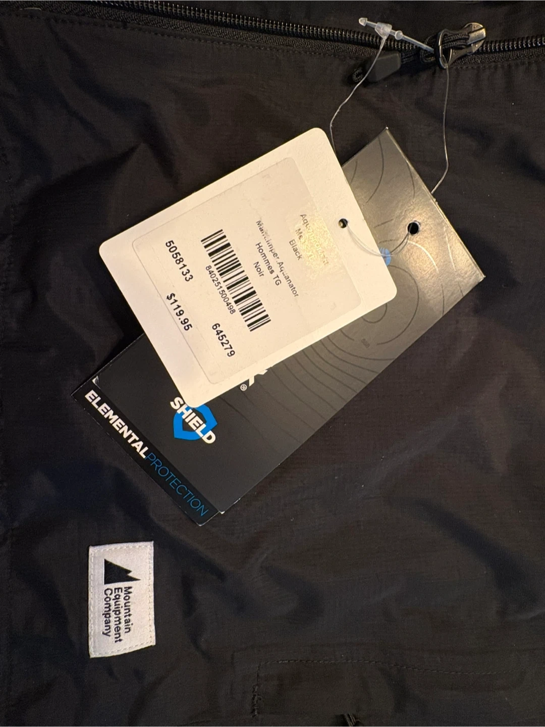 15Mountain Equipment Co-op Hammer Anorak in black, size XL. Originally bought for $119.95. Elemental Shield protection, designed in Canada