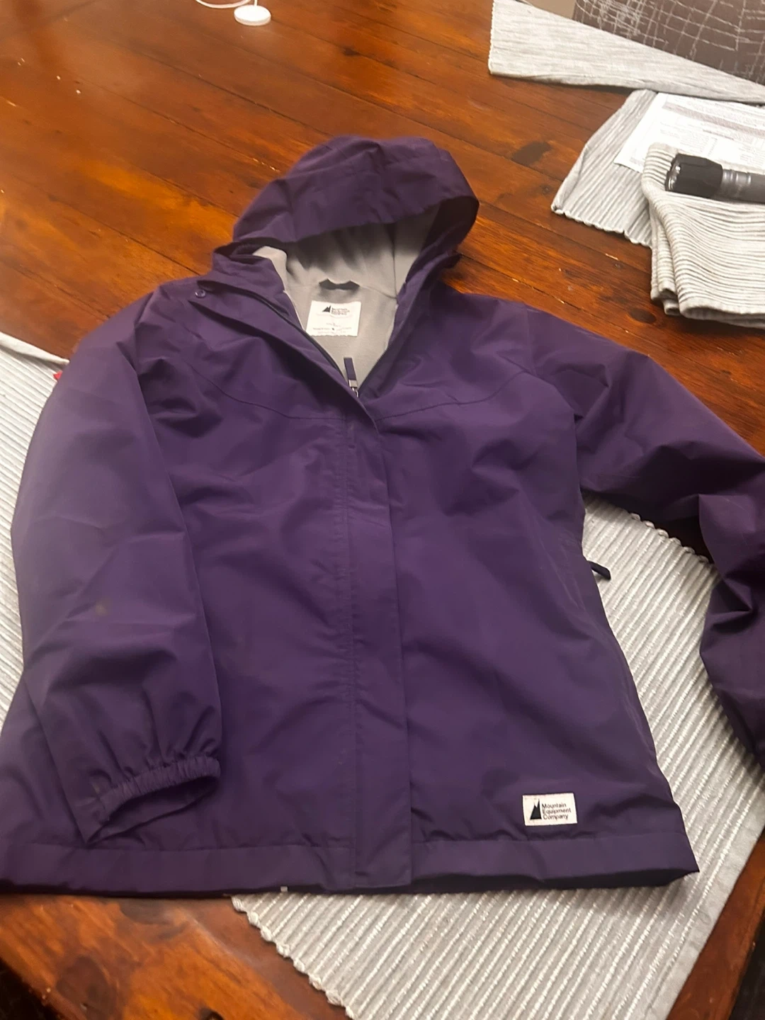 60Selling a purple rain jacket from Mountain Equipment Company (MEC). It's in good condition and perfect for those rainy days! Kids size 14