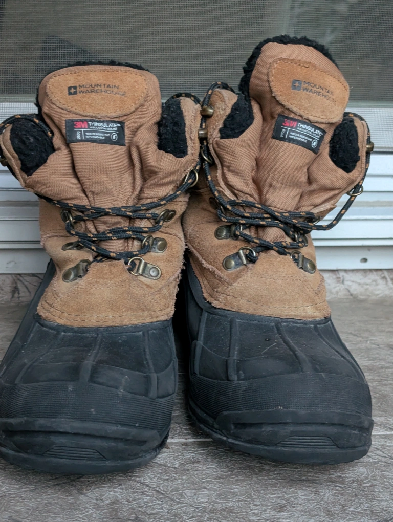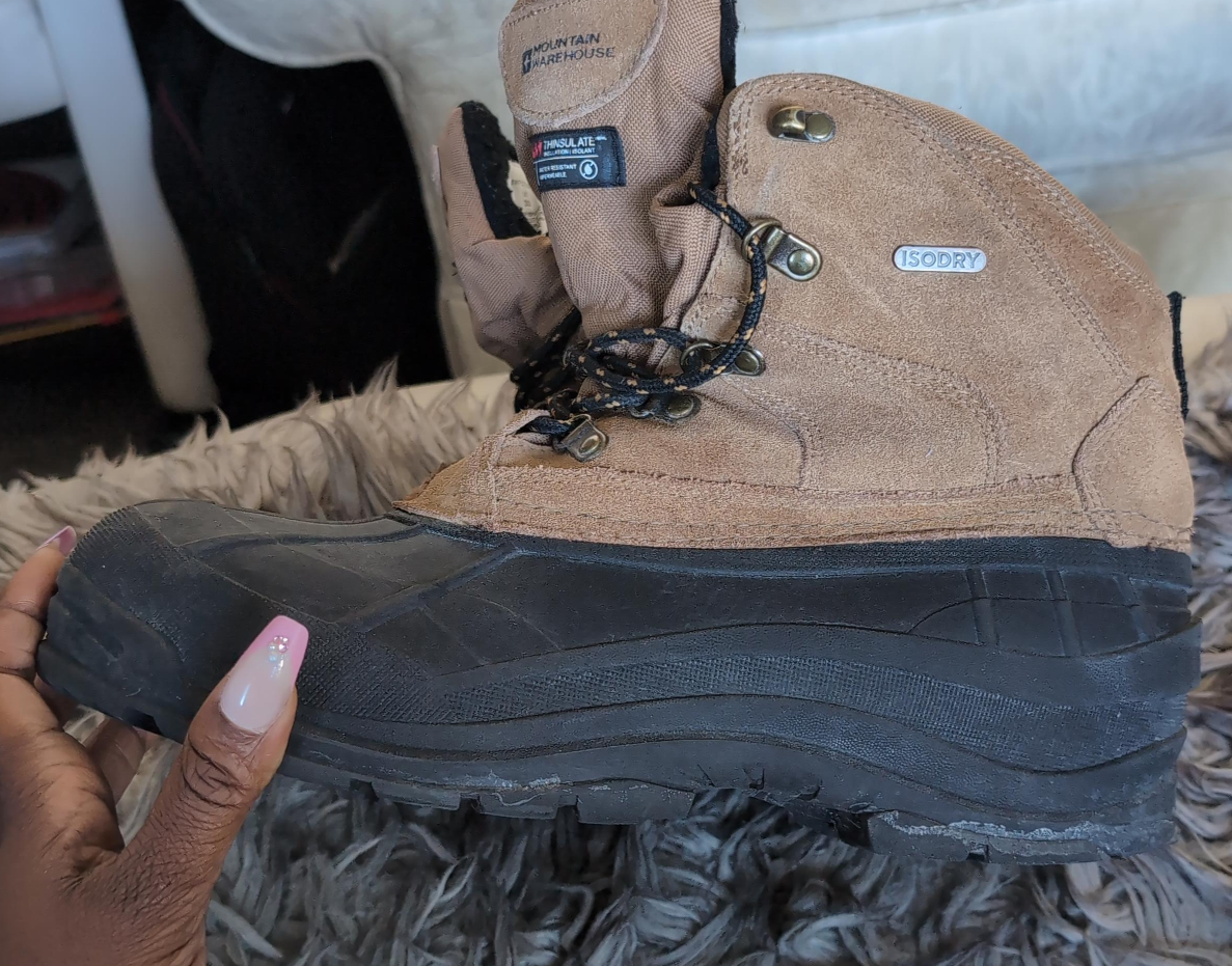 98Selling a pair of Mountain Warehouse winter boots! They are a US size 10 and feature ISODRY technology. These boots are perfect for keeping your feet warm and dry during the winter months. They show some signs of wear but are still in good condition for the upcoming snowy season
