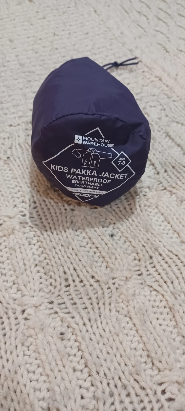 70Selling a Mountain Warehouse Kids Pakka Jacket, perfect for ages 7-8! It's waterproof and breathable, making it great for outdoor adventures. The jacket also has reflective print details for added safety. Comes with its original stuff sack for easy storage and portability