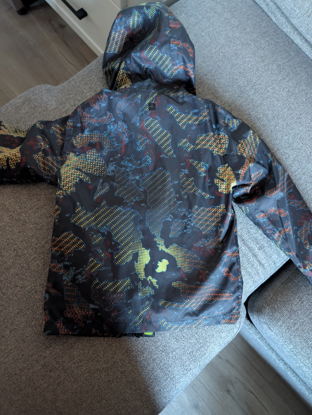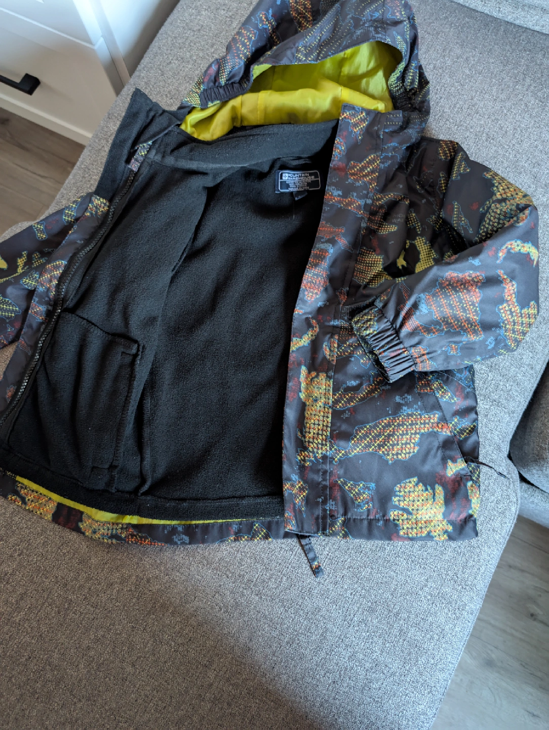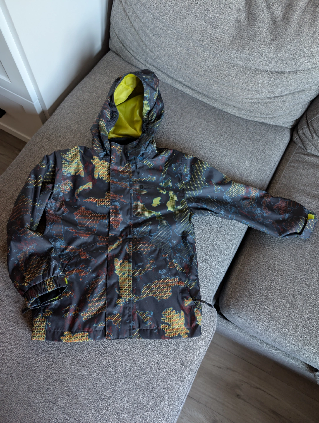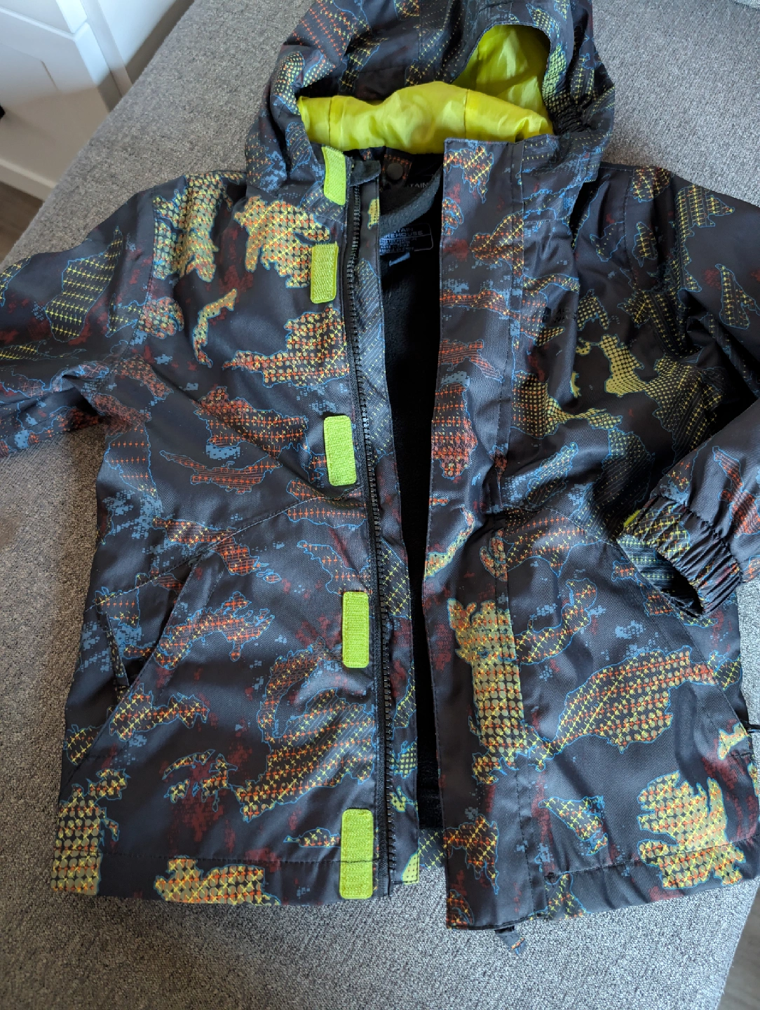 10Selling a Mountain Warehouse kids' waterproof jacket in size 3-4 years. It's perfect for keeping your little one dry and warm on outdoor adventures. The jacket features a hood and a fun, colourful pattern.