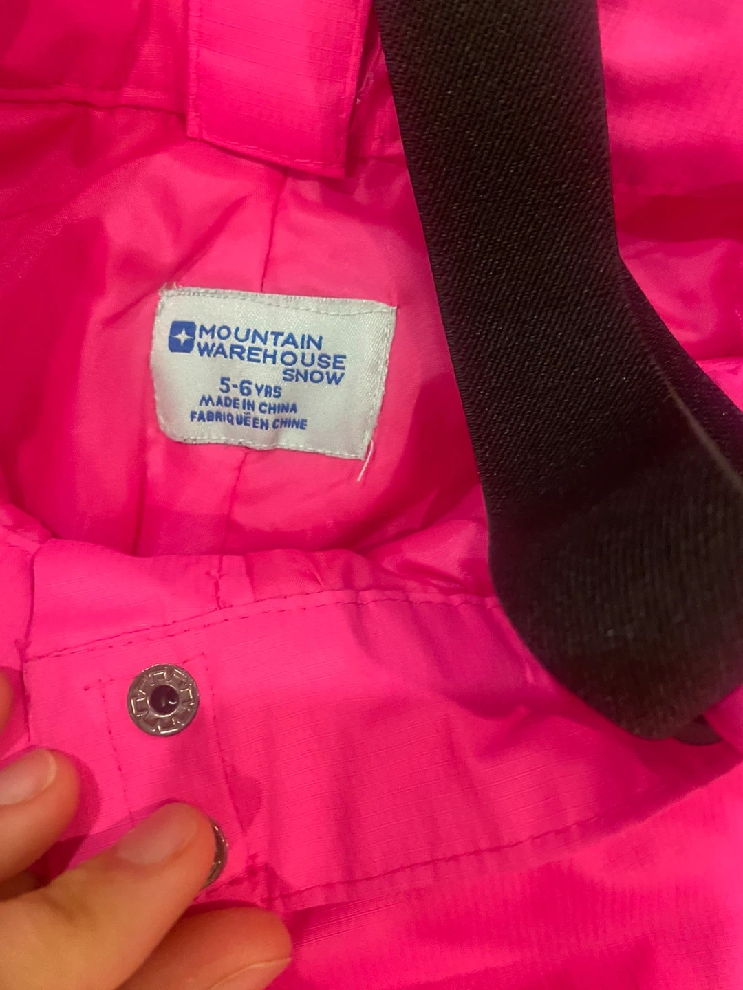 106Selling Mountain Warehouse snow pant in size 5-6 years. These bright pink snow pants are perfect for keeping your little one warm and dry during winter activities. They feature adjustable suspenders and reinforced knees for added durability. Great for skiing, snowboarding, or just playing in the snow!