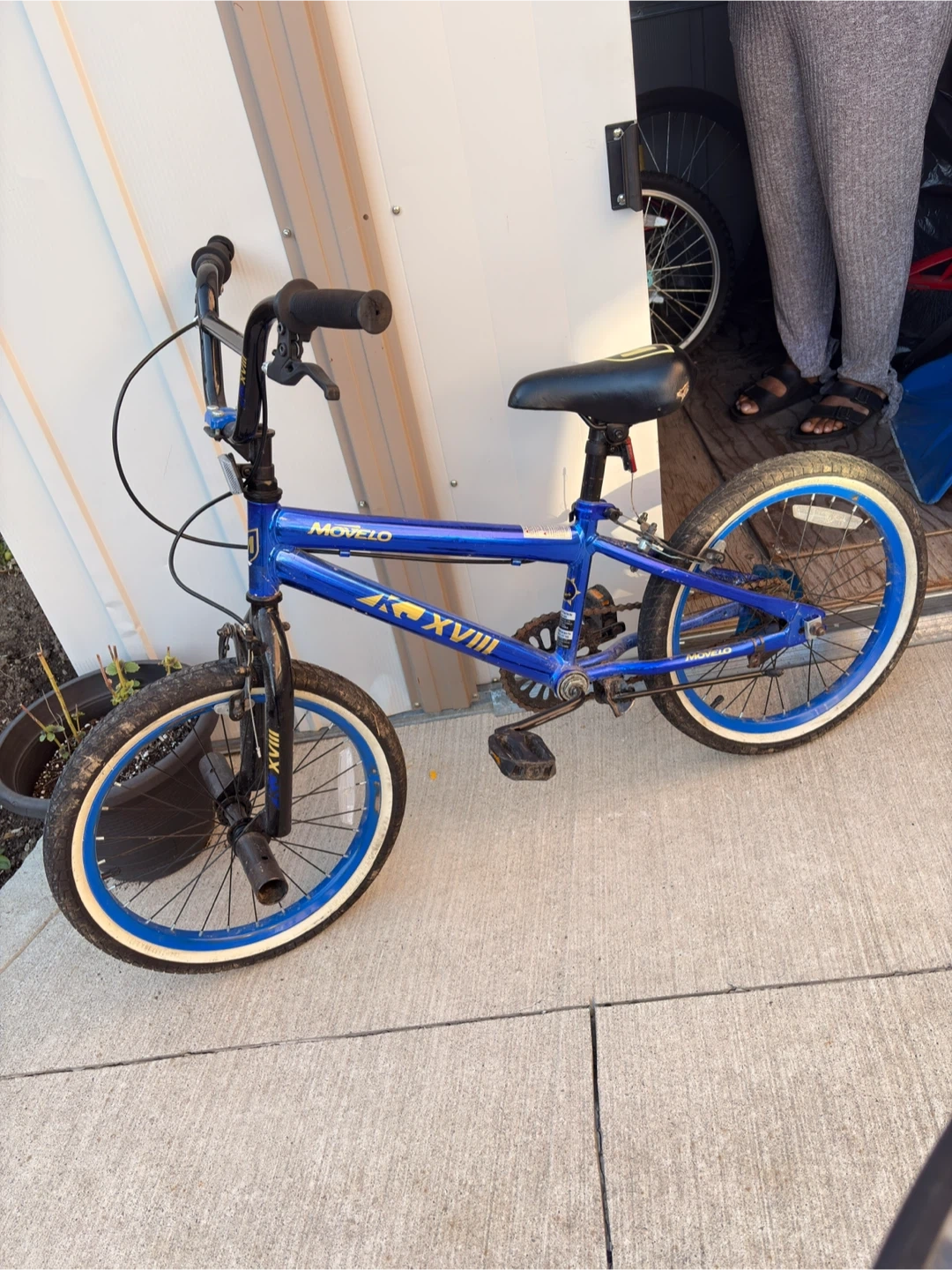 60Selling a blue Movelo BMX bike. It has some wear and tear, but it's still in good working condition. Great for kids learning to ride or for doing tricks at the park!