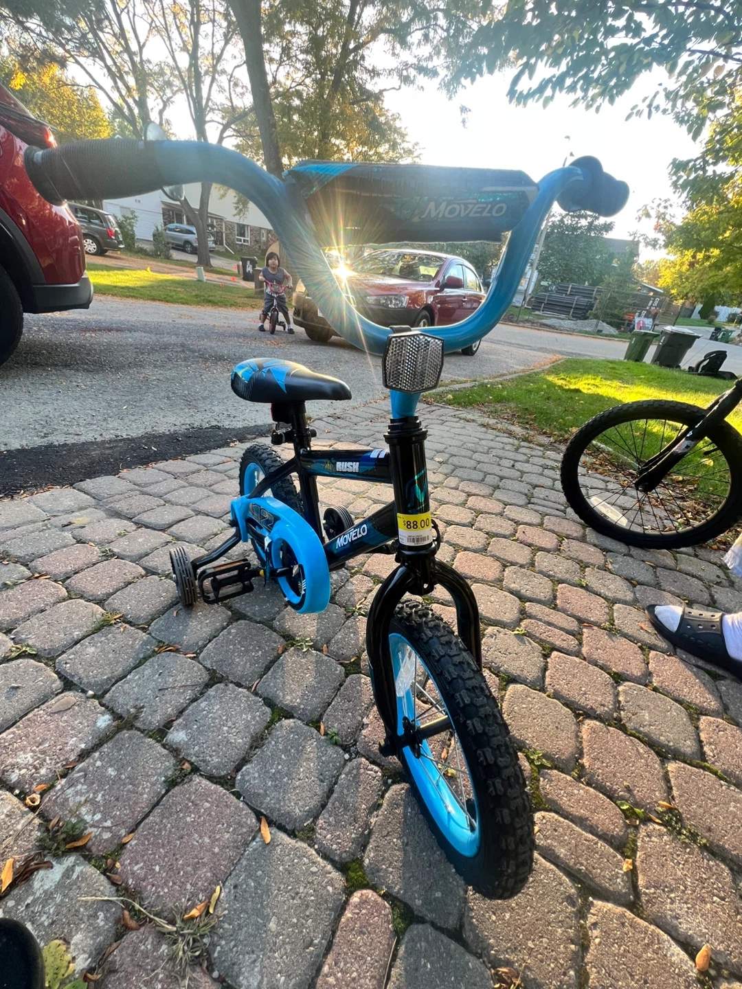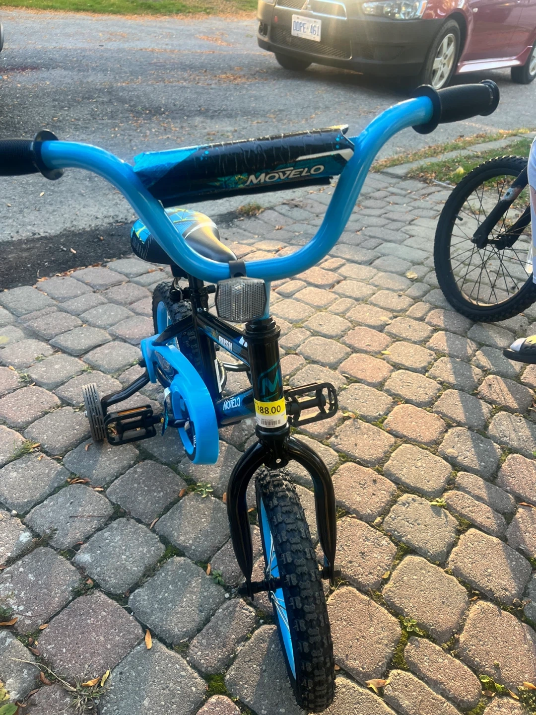 Selling a Movelo Rush kids bike in blue and black! It's in great shape and ready for a new rider. Perfect for learning with training wheels Bought if 88$ from WALMART days used !