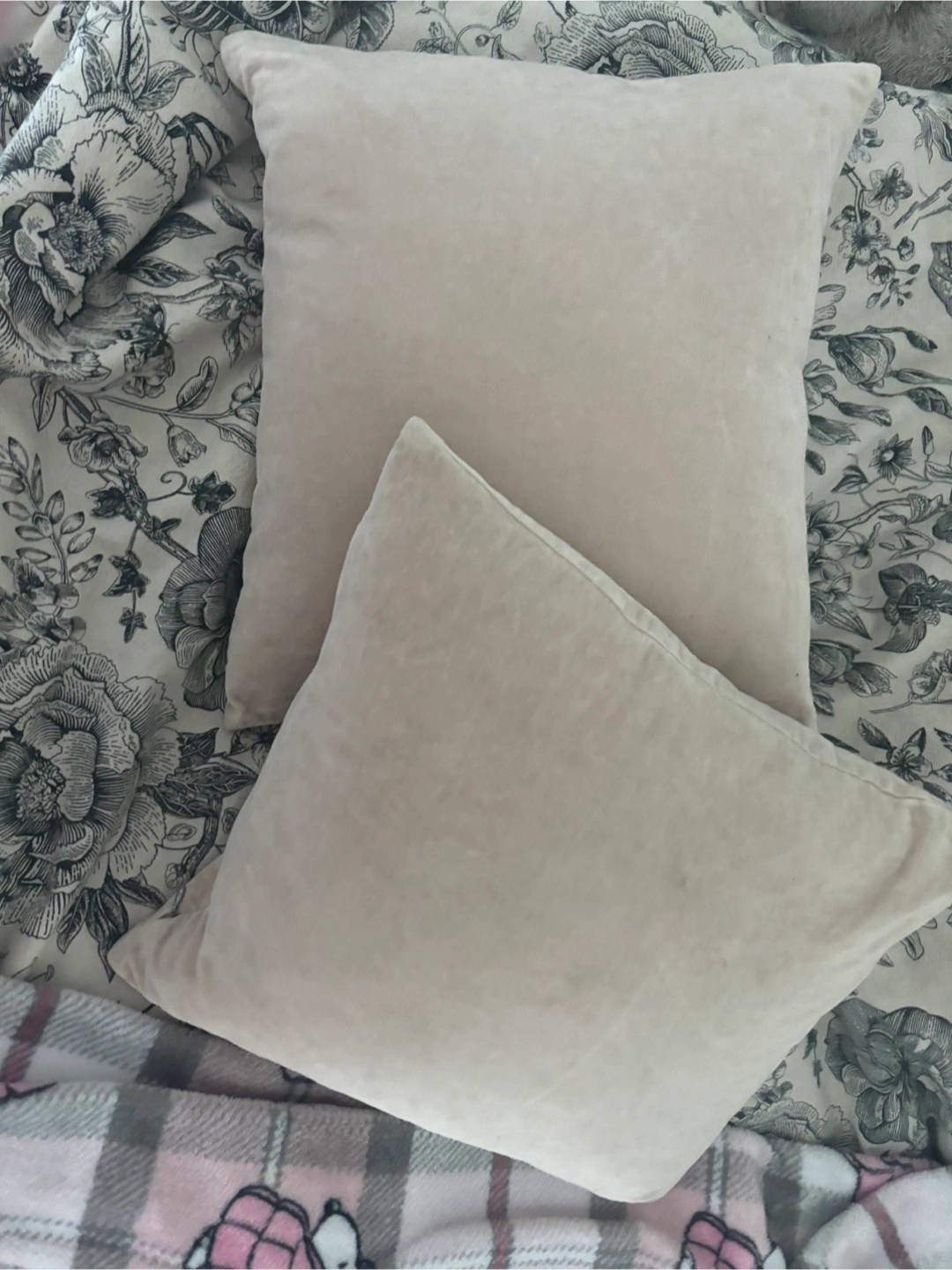 468Two decorative throw pillows in a neutral colour! They're in great shape and would look lovely on a couch or bed. Perfect for adding a touch of cozy to your space