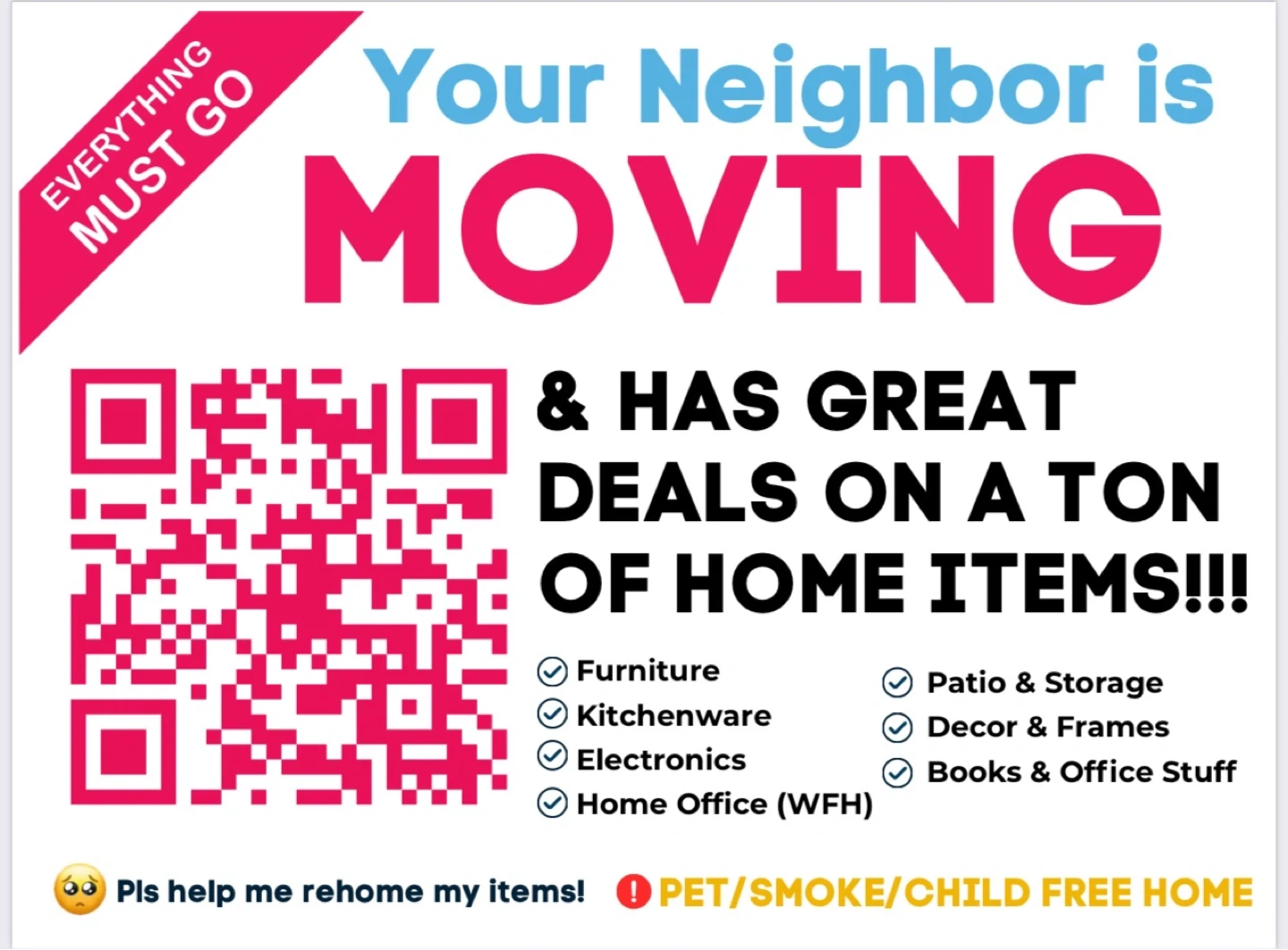 Moving Sale - Furniture, Kitchenware, Electronics & More!