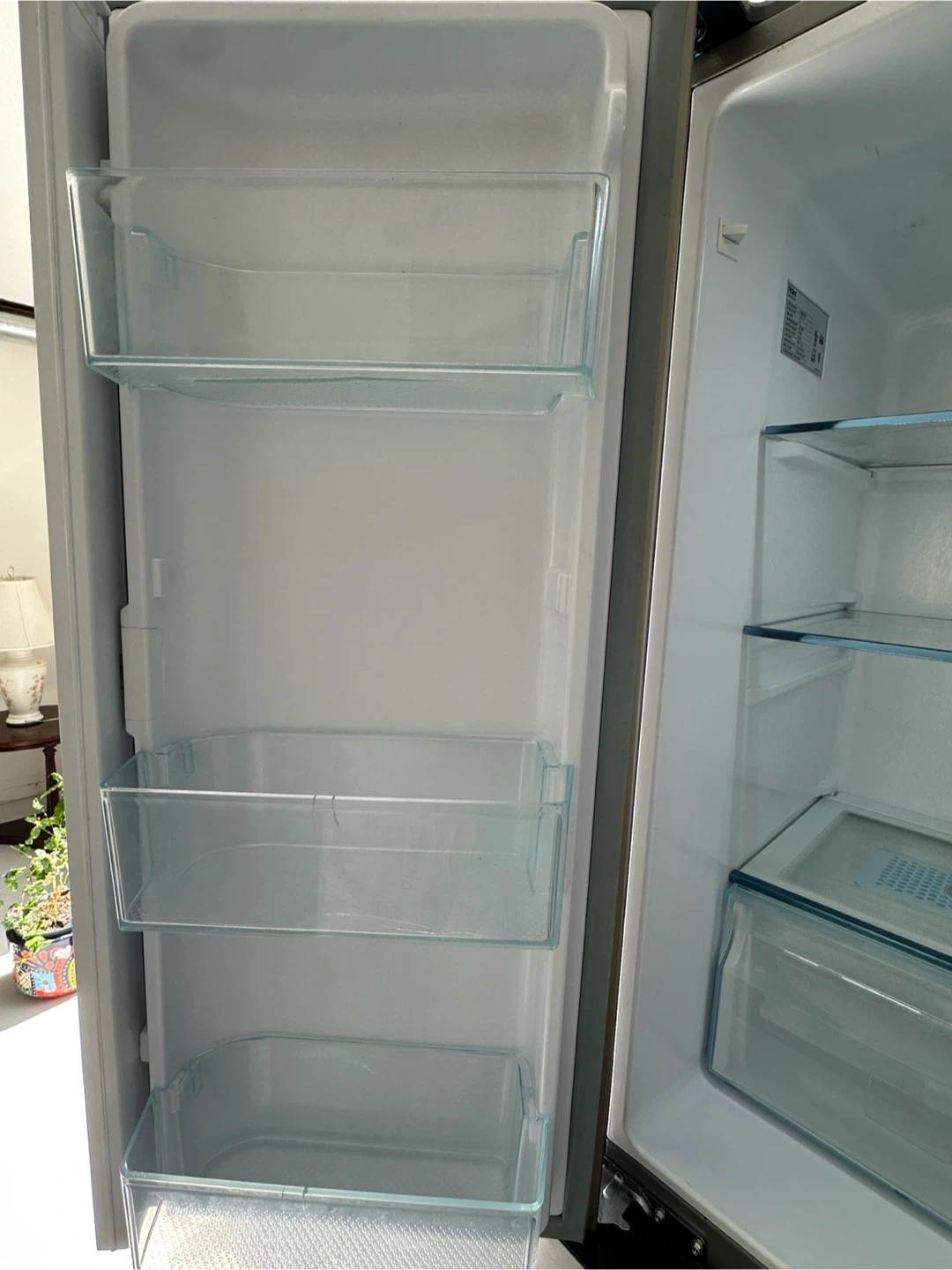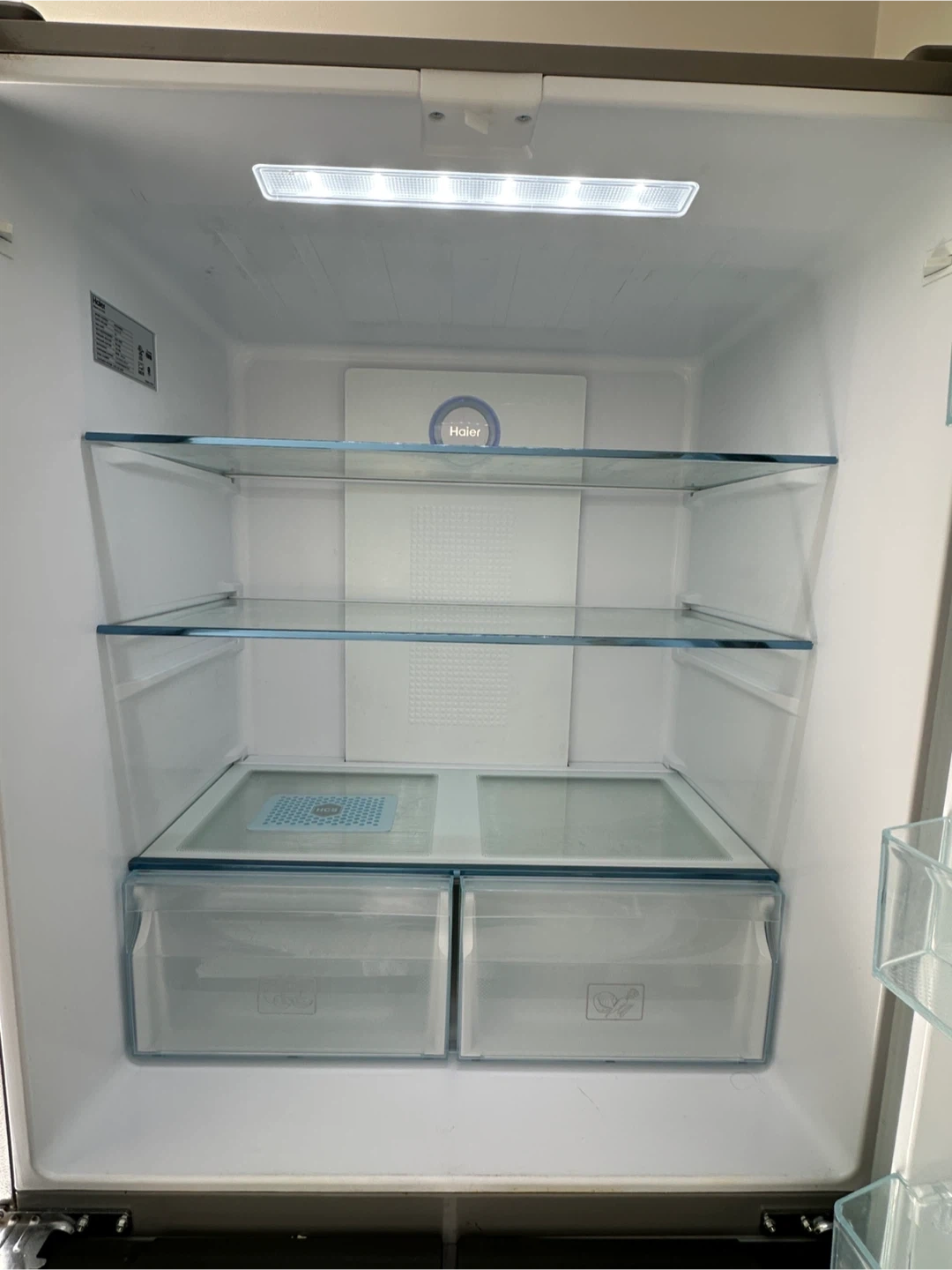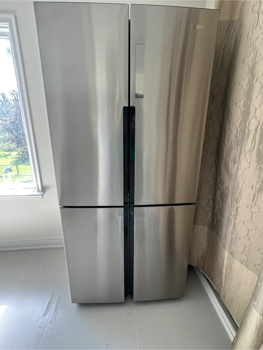Haier quad door refrigerator in stainless steel. Side French Door Refrigerator. 33 inch Width, ENERGY STAR Certified, 16.8 cu. ft. Capacity, Counter Depth , Digital Thermostat, Quad Door, Humidity Control It's in great condition and ready to keep your groceries fresh! comes from a pet and smoke free home Pickup- Highway 7 Acton Perfect for anyone looking to upgrade their kitchen!