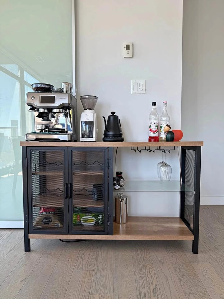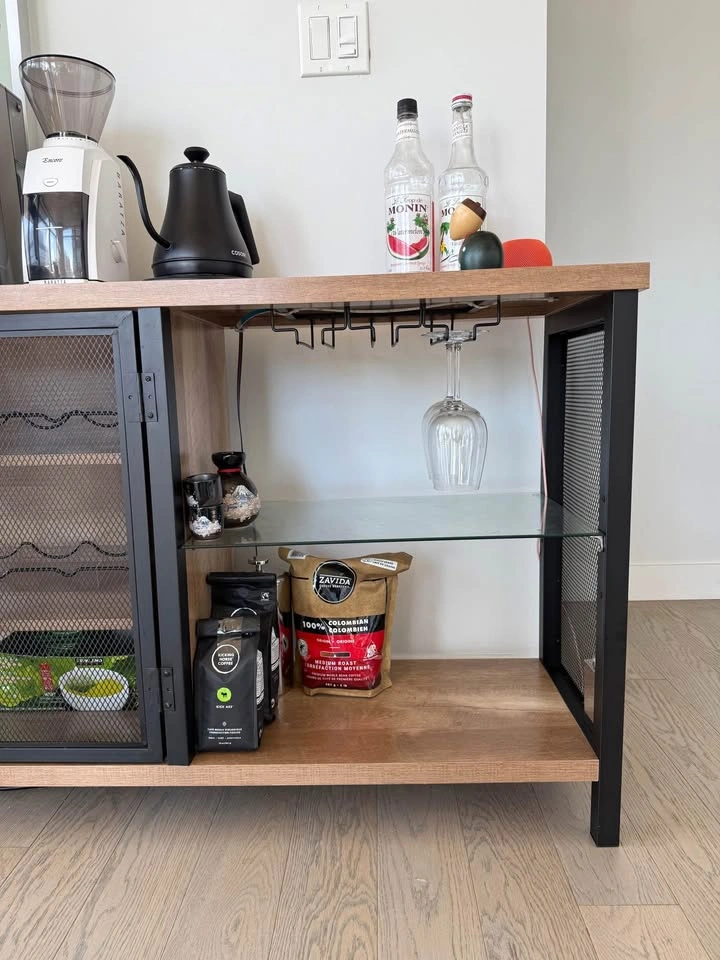 81Selling this Oak coloured bar table purchased from Wayfair. It’s well designed featuring wine holders, multiple compartments, cocktail glass holders, etc. I’ve owned it for almost 2 years, but it’s been well maintained and in good condition. I’m selling it because I’m leaving the country and won’t be taking it with me. Dimensions 48L x 14W x 26H