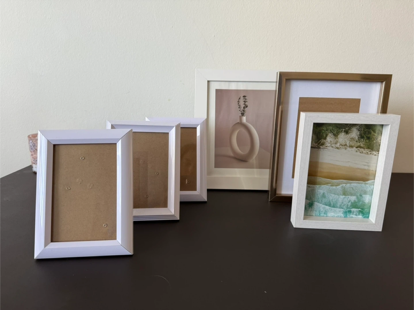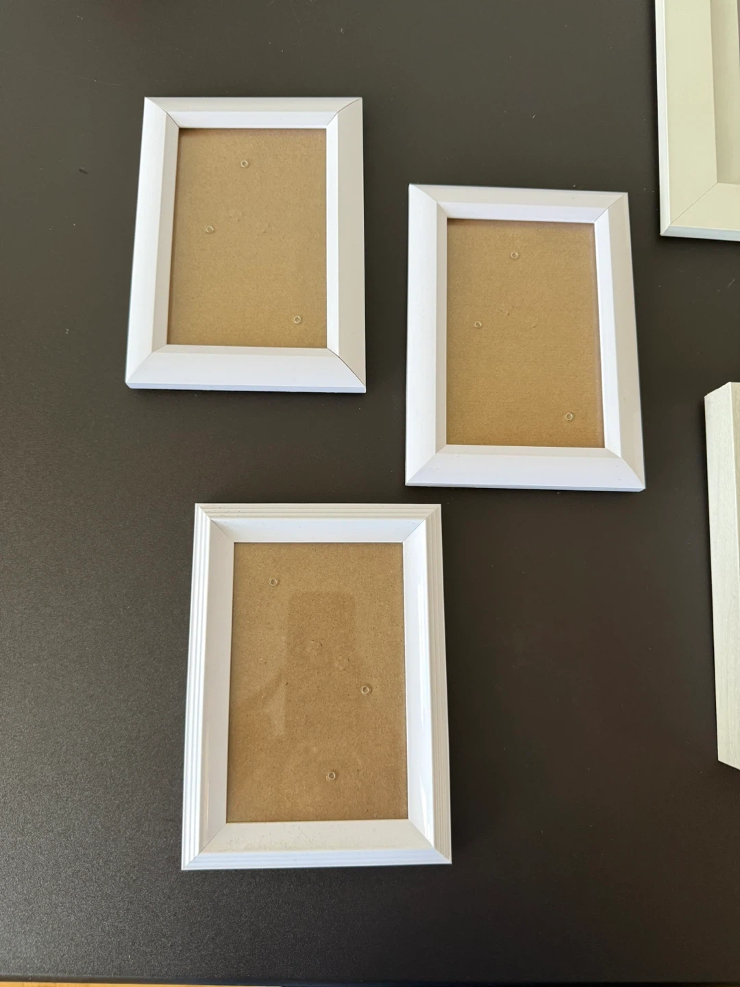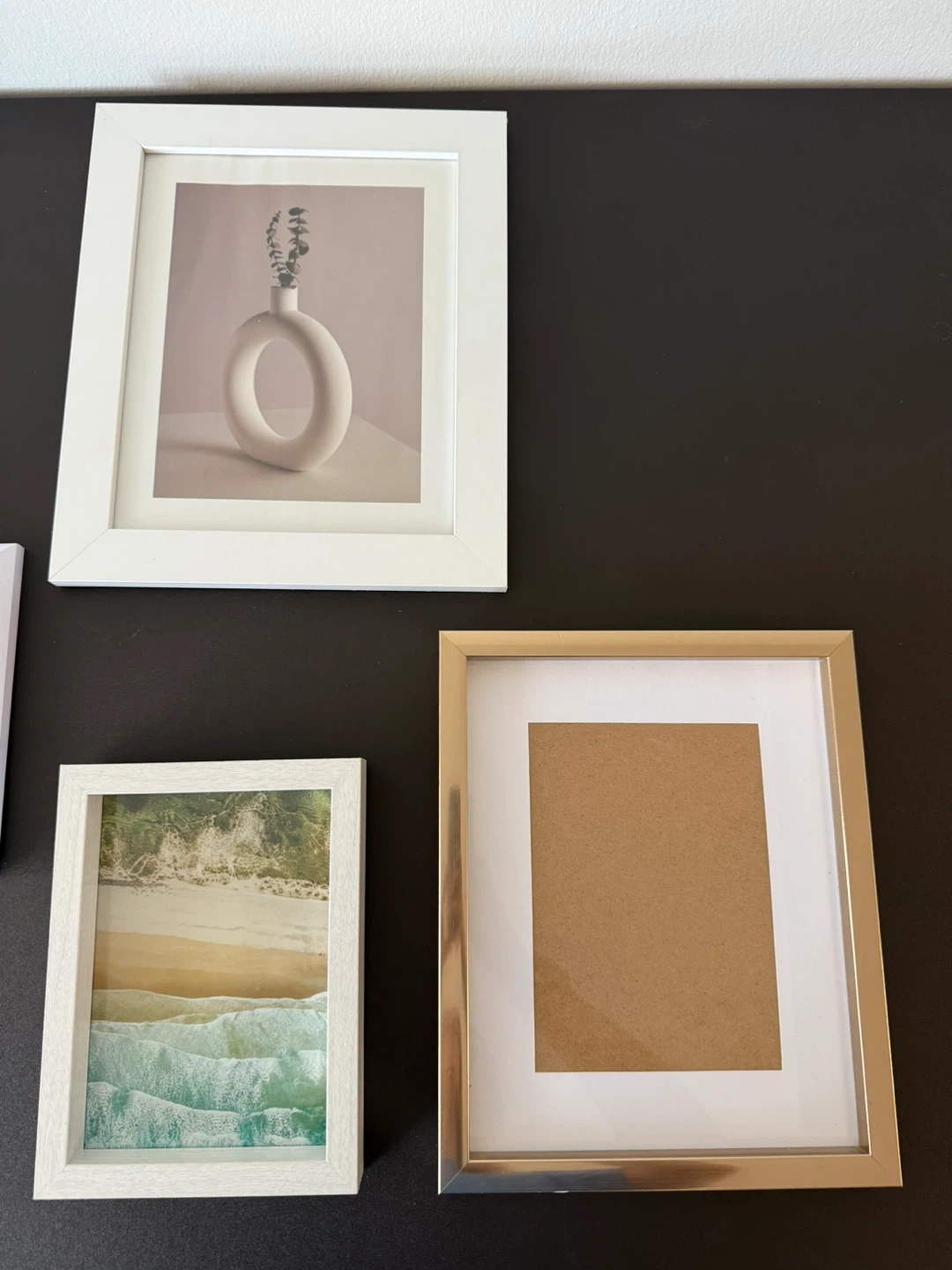 Selling a collection of picture frames! There are several white frames and one gold frame. They're in great shape and ready to display your favourite photos or art. They are different sizes
