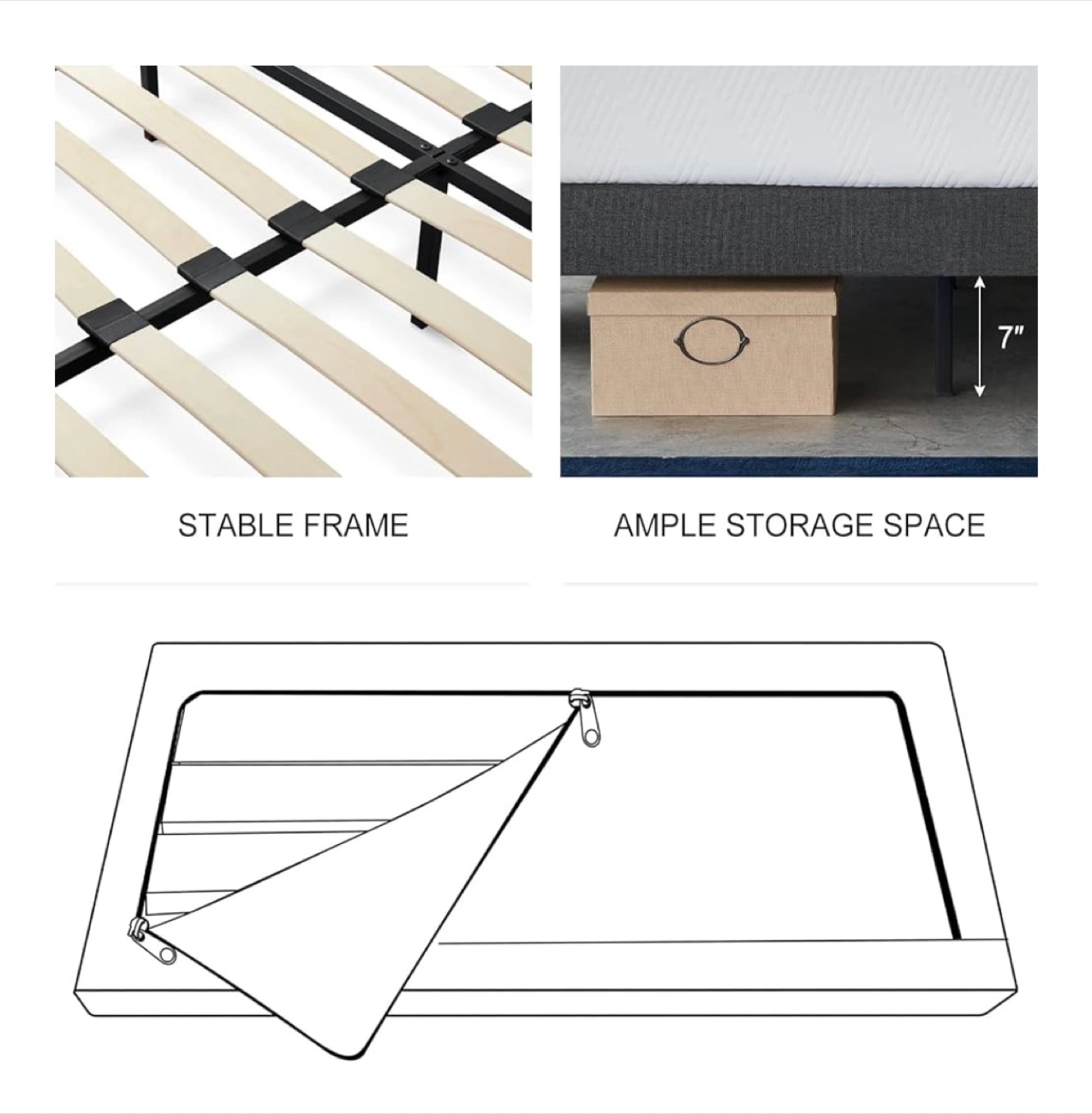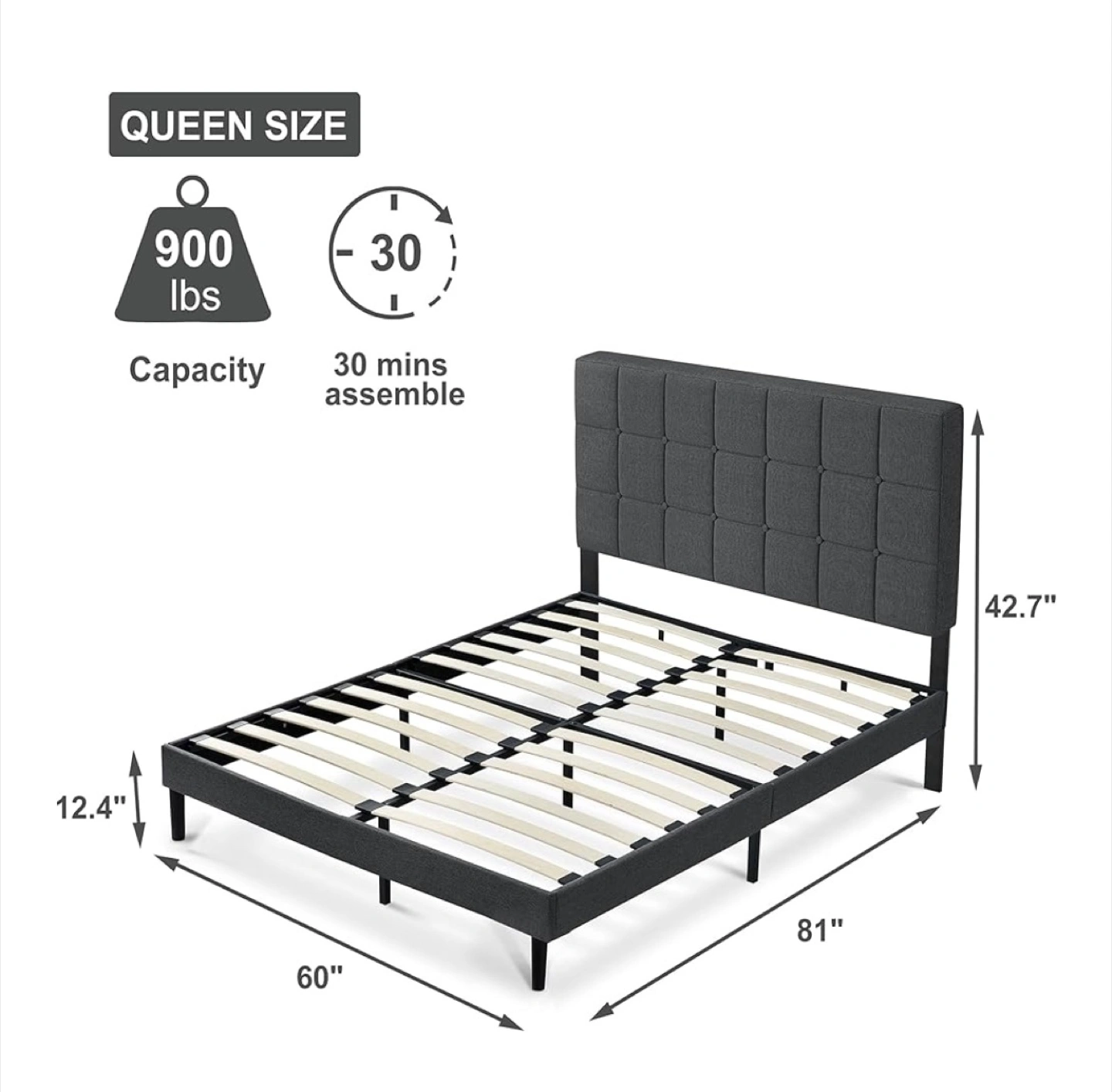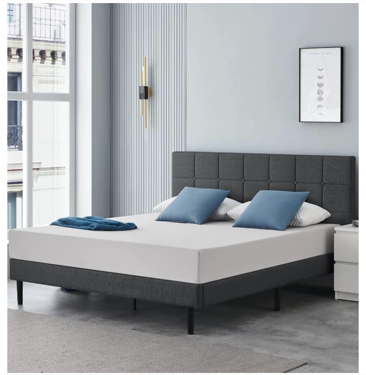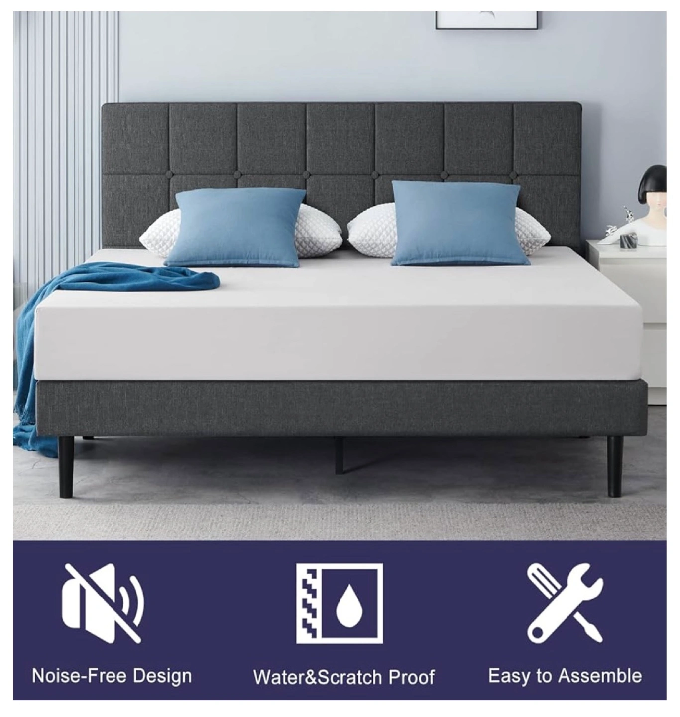 25Molblly Upholstered Queen Size Platform Bed Frame with Headboard and Strong Wooden Slats with No Box Spring Needed &Easy Assembly, Queen Bed Frame Gray. Zinus Queen Mattress, 8 Inch Green Tea Cooling Gel Memory Foam, Mattress in a Box, CertiPUR-US Certified with Pressure Relief Cool Sleep, 10 Years Warranty, Queen Size Together for 180$