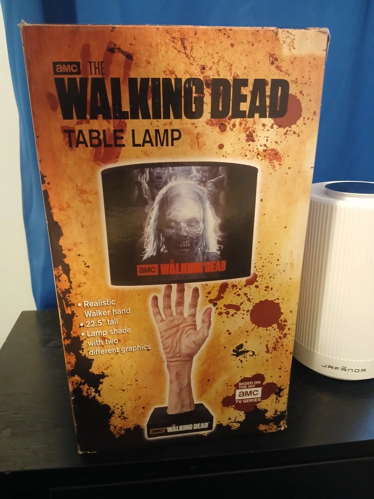 Officially licensed AMC The Walking Dead table lamp. Features a realistic walker hand and lampshade with two different graphics. 22.5 inches tall. New in box.