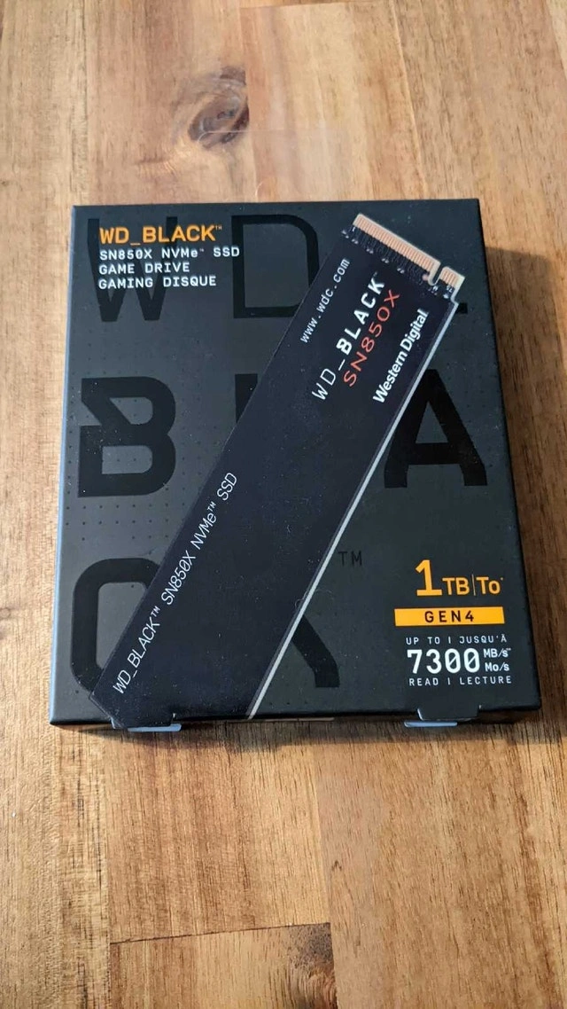 Brand new sealed WD Black SN850X 1TB NVMe SSD. This is a fast Gen4 drive with built-in DRAM cache. I purchased it as part of a bundle but don't need the drive personally. Pickup in Aurora.