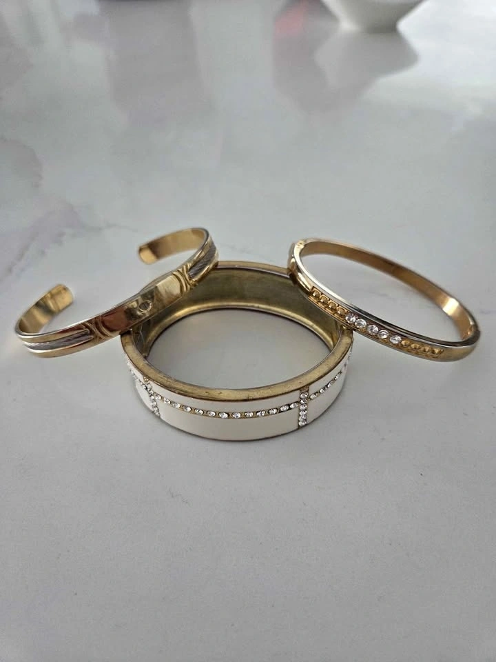 Gorgeous bundle of vintage cuff bracelets. All the clasps work and are secure. There is some tarnish due to age and the cream cuff may be missing a top crystal stone, but it's hard to notice at first glance. Please see pictures. Pick up in Oshawa near Ritson and Hillcroft
