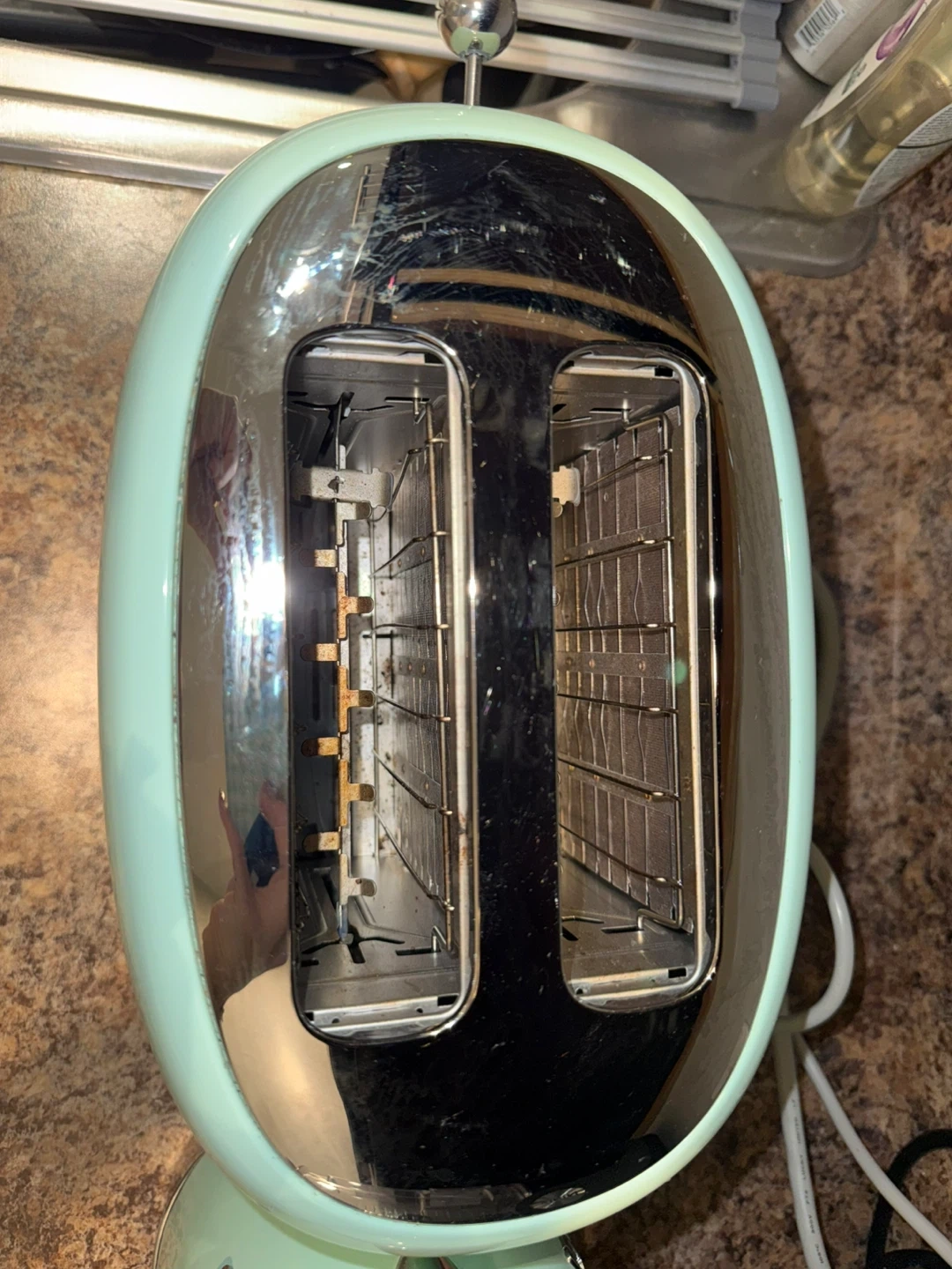 Matching light green Smeg kettle and toaster. Used but both in great condition. Toaster cord a little melted/ bent at the end (pictured) but hasn’t interfered with functionality.