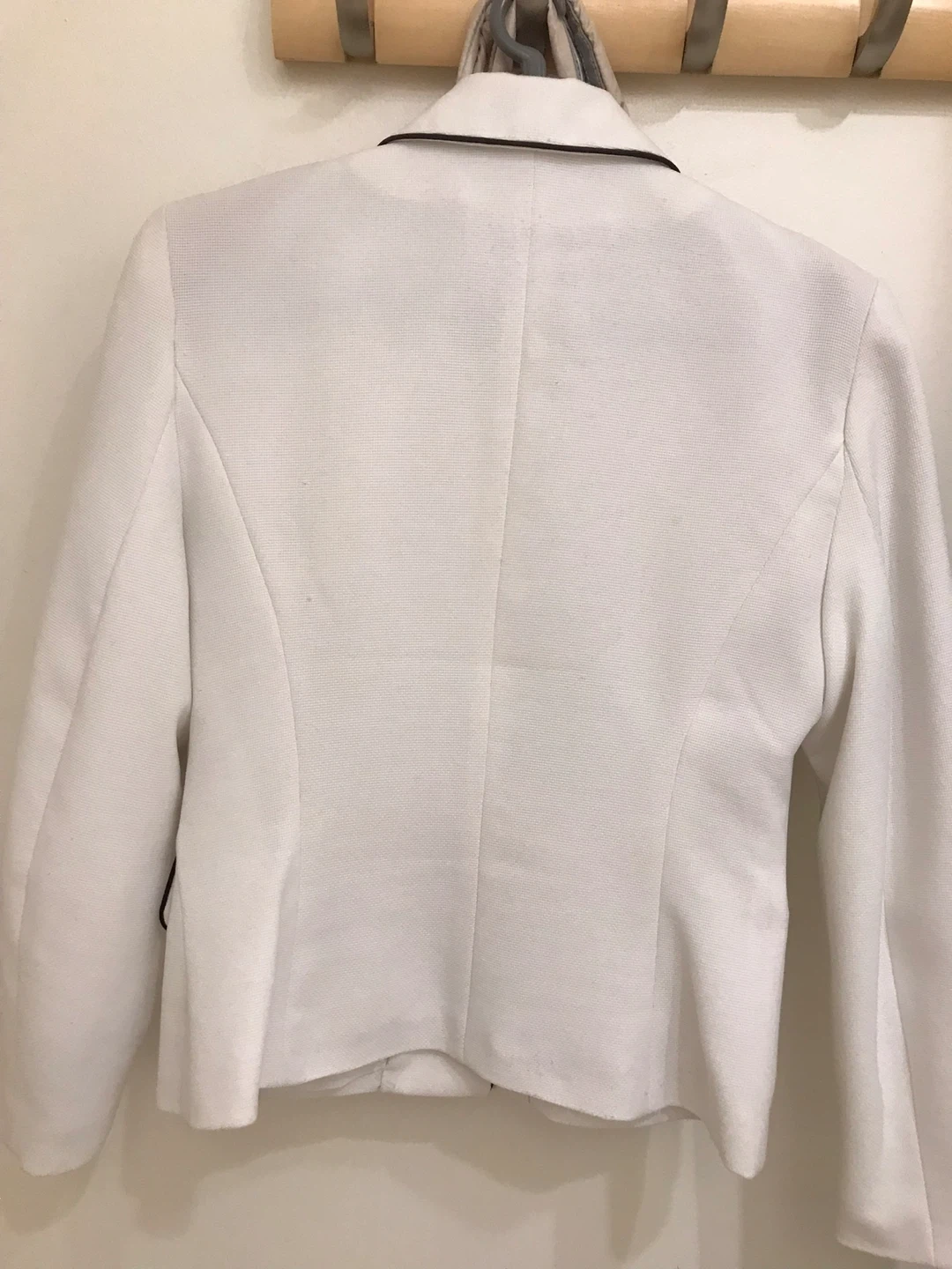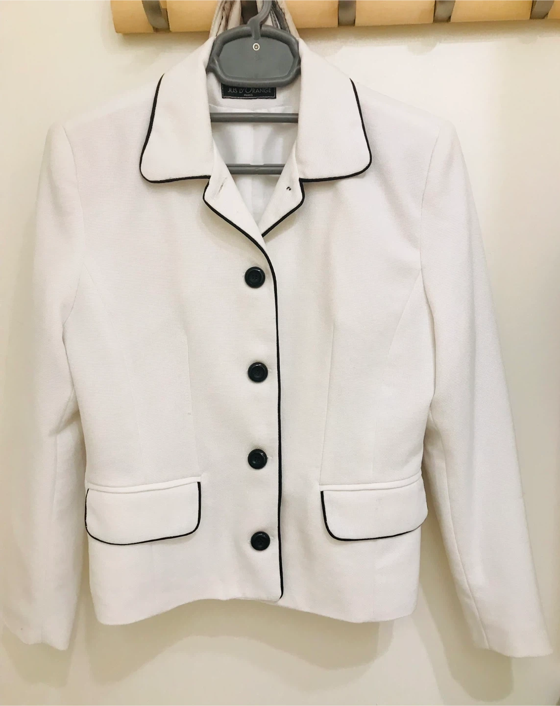 JUS D'ORANGE ( French brand)blazer in white with black trim. Features three black button closures and two pocket details and itβs all lined .A classic piece for layering .