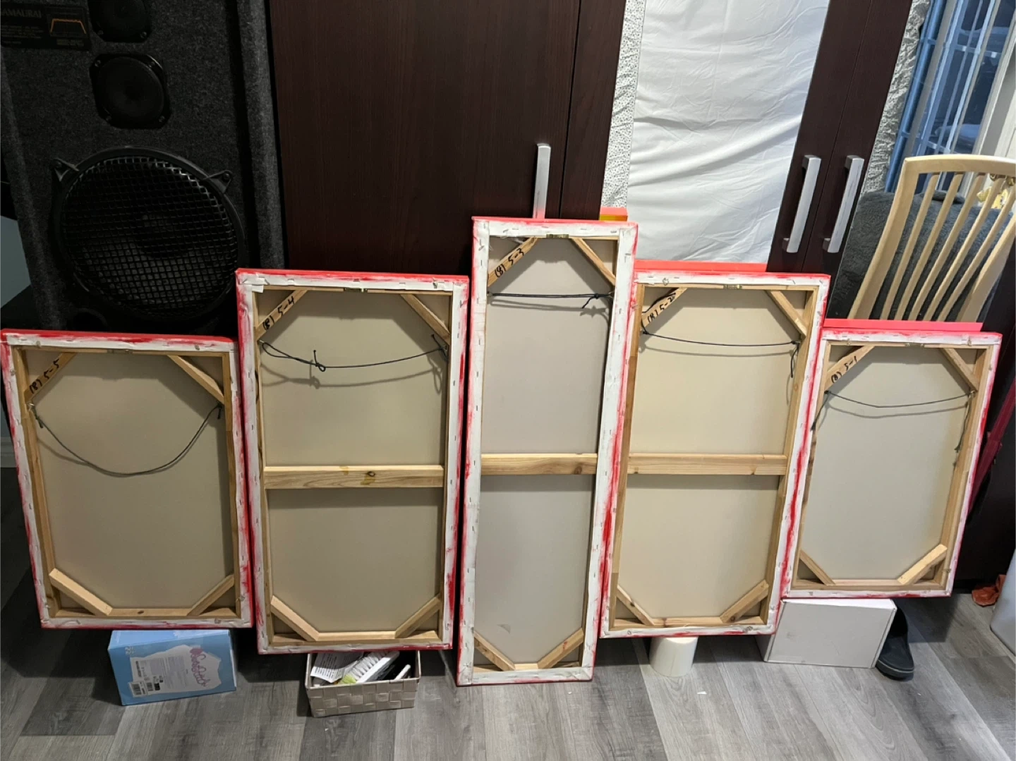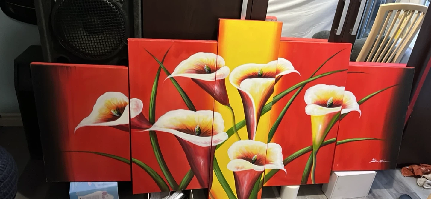 Selling a vibrant 5-panel canvas wall art set featuring a beautiful floral design. The artwork is in great condition and ready to brighten up any room in your home!