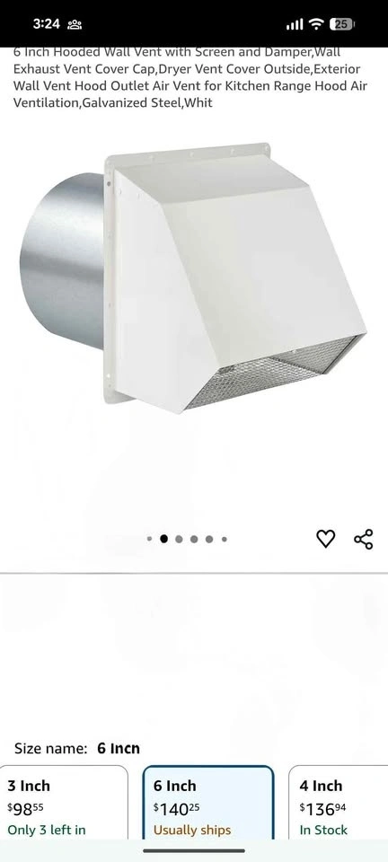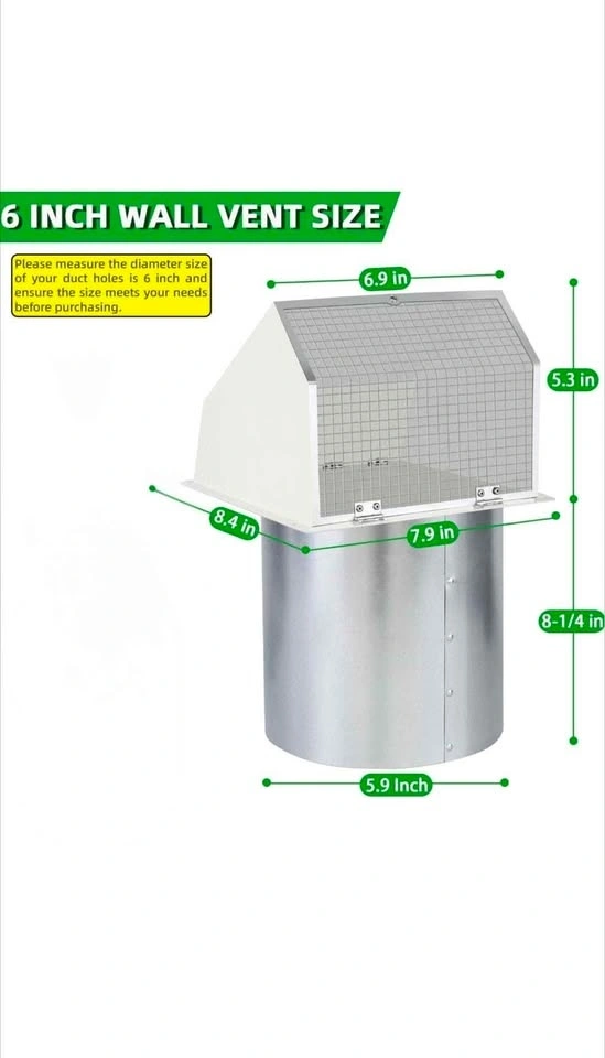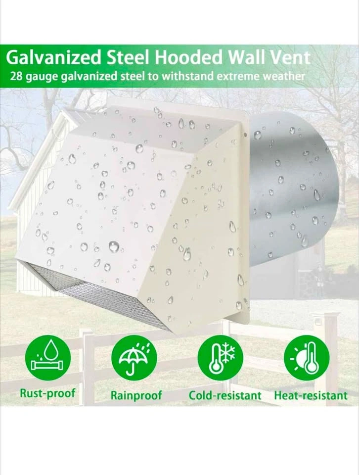 6" Hooded Wall Vent with Screen and Damper,Wall Exhaust Vent Cover Cap,Dryer Vent Cover Outside,Exterior Wall Vent Hood Outlet Air Vent for Kitchen Range Hood Air Ventilation,Galvanized Steel,White