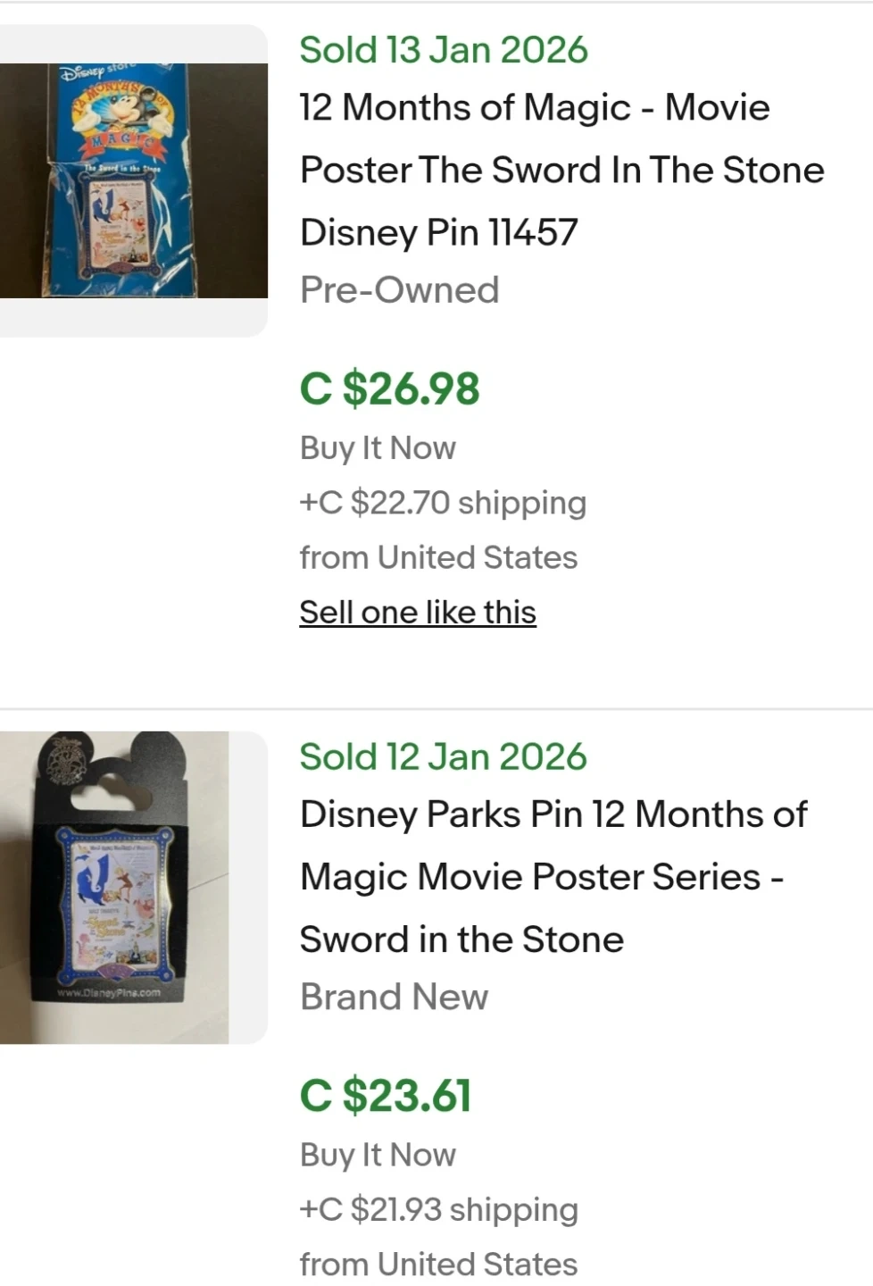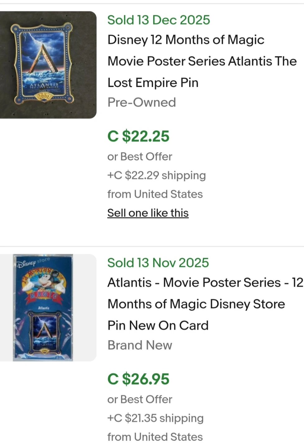 Disney Store Collectible 12 Months of Magic 2002 Movie Poster Lapel Pins.