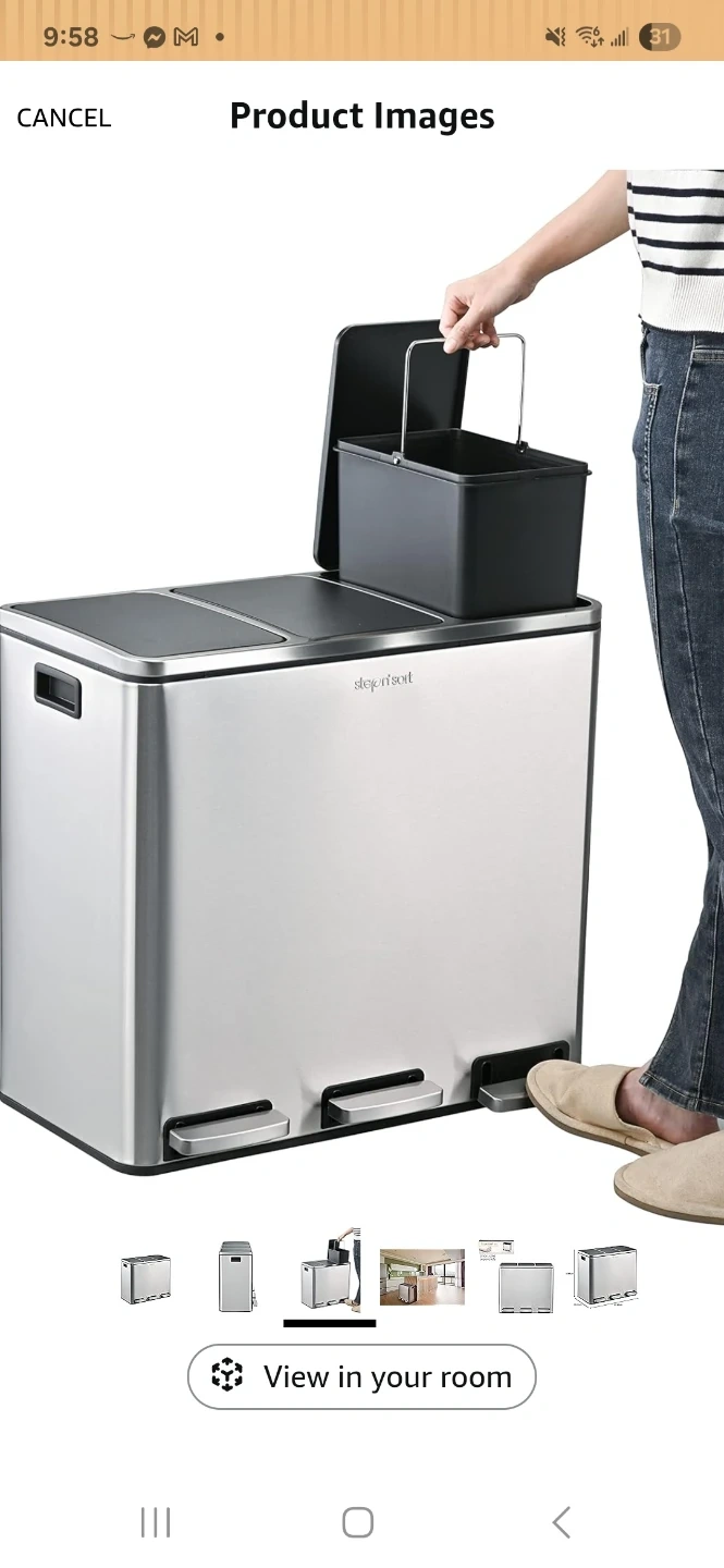 Step N' Sort 3-Compartment Trash and Recycling Bin
