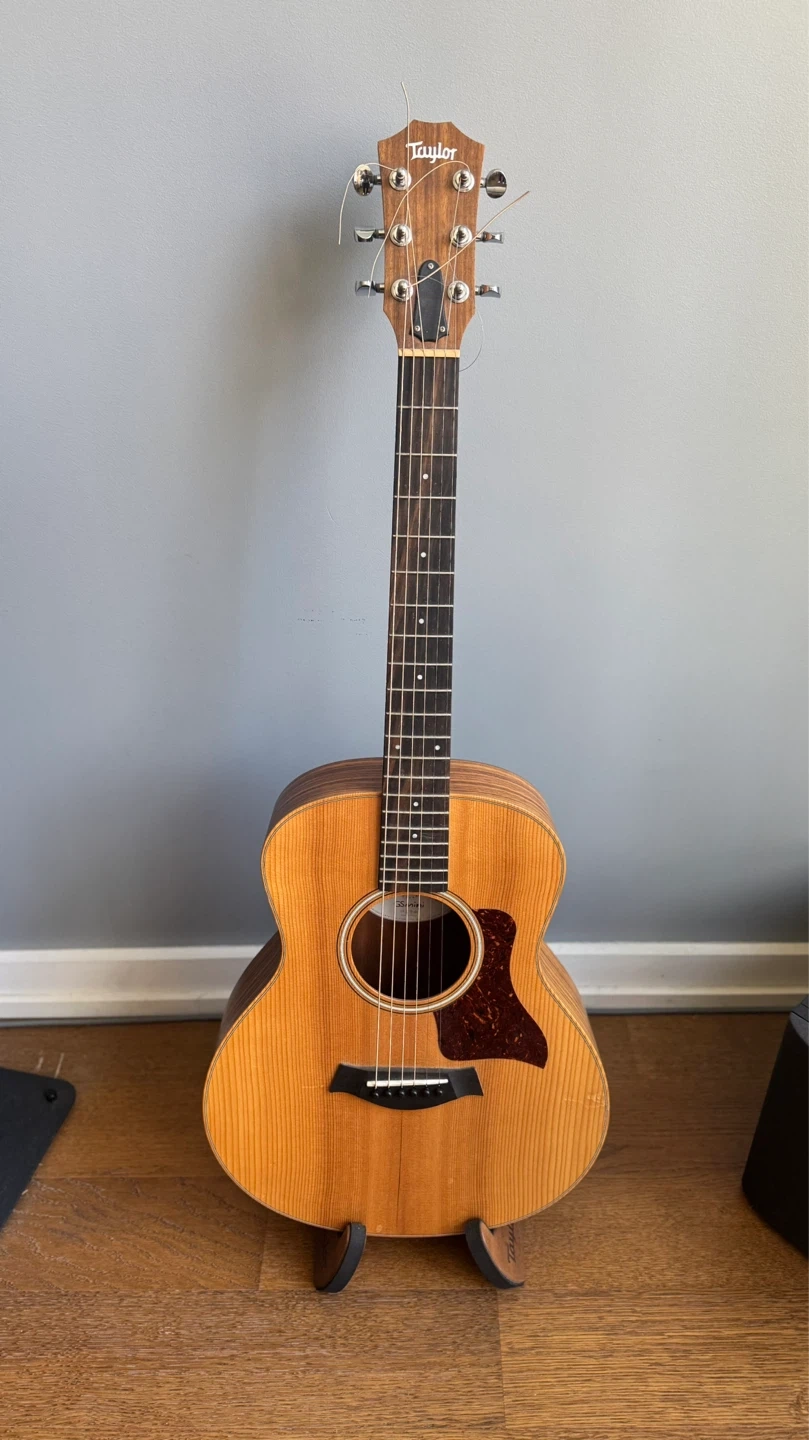 This Taylor GS Mini acoustic guitar has a warm tone and comfortable playability. Great for smaller hands or travel. Originally $500.