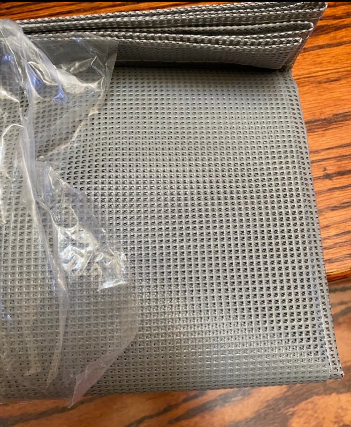 Mesh gate for pet containment. It's designed for stairs and pet areas. Made of durable mesh material. Comes with ties for secure installation.