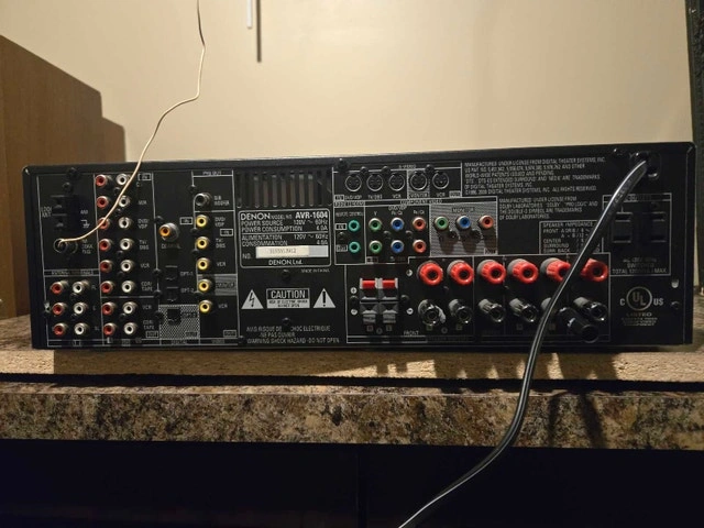 Selling a used Denon AVR-1604 AV surround receiver, perfect for your home theatre setup. Tested outputs front A/B, tuner, and the remote work awesome. This receiver delivers great sound quality and supports multiple audio formats. This unit is in good working order and provides reliable performance. Features include Dolby Digital and DTS decoding, multiple audio inputs and outputs, AM/FM tuner, and remote control included. If the ad is up, it's available!