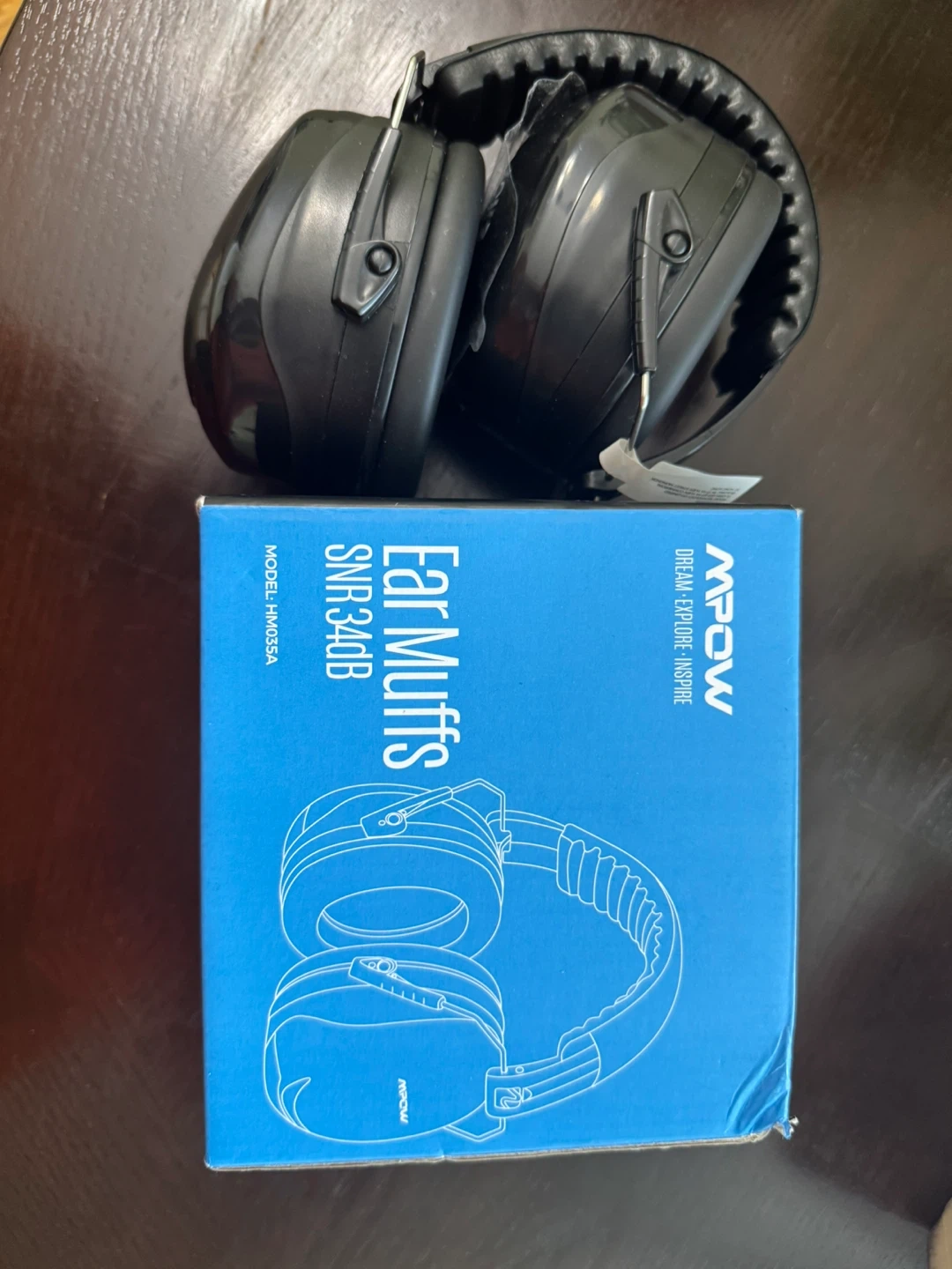 Selling a pair of Mpow HM055A ear muffs. They are in excellent condition and come with the original box. These ear muffs have an SNR of 34dB, providing great noise reduction. Perfect for anyone needing hearing protection!