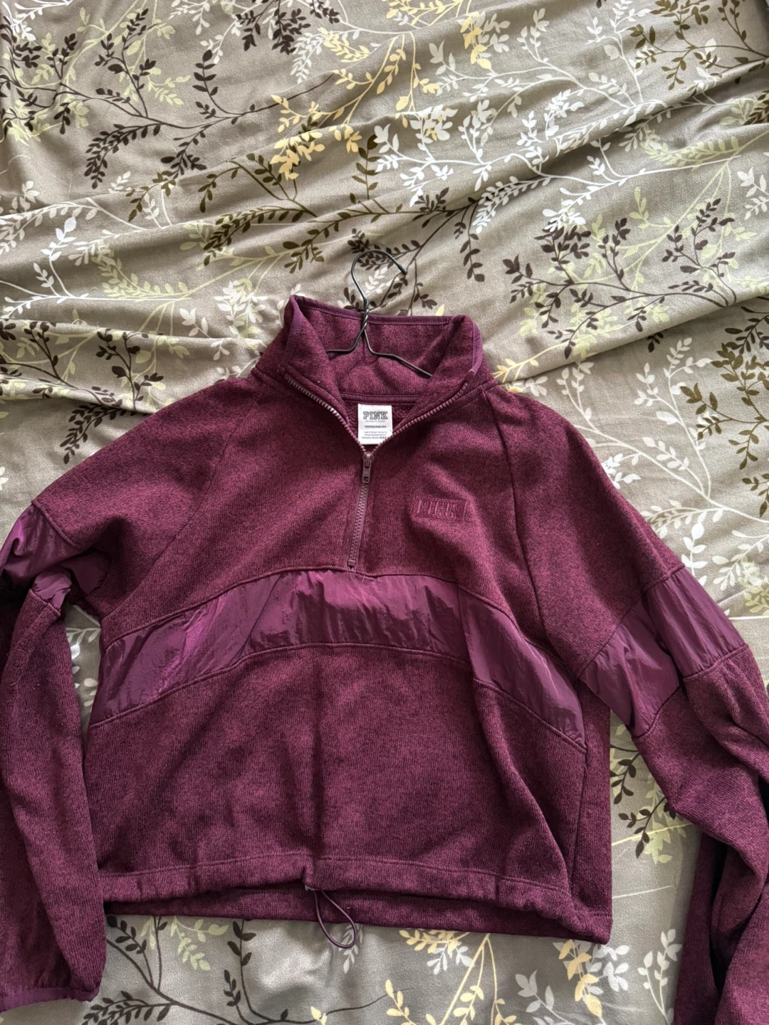 Selling a PINK quarter zip pullover in a lovely burgundy colour. It's a size small and in great condition. Perfect for layering or wearing on its own!