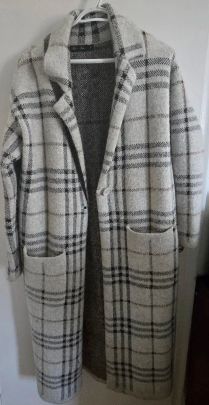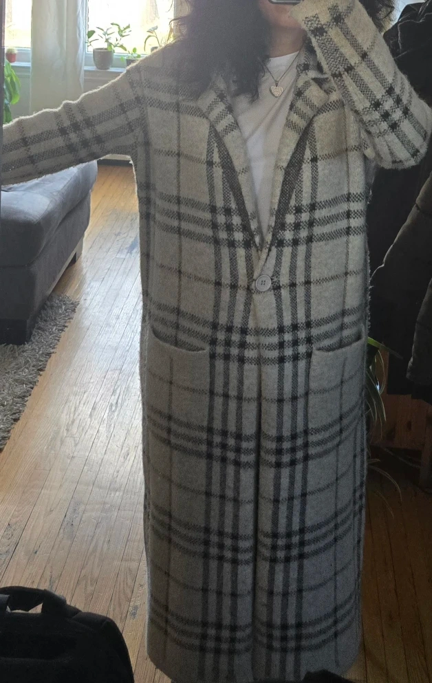 Selling a Life She long plaid coat in a size small, but fit oversize! It's in excellent conditions, very warm and perfect for the cooler months. The coat features a stylish plaid pattern and convenient pockets. Extra bottom.