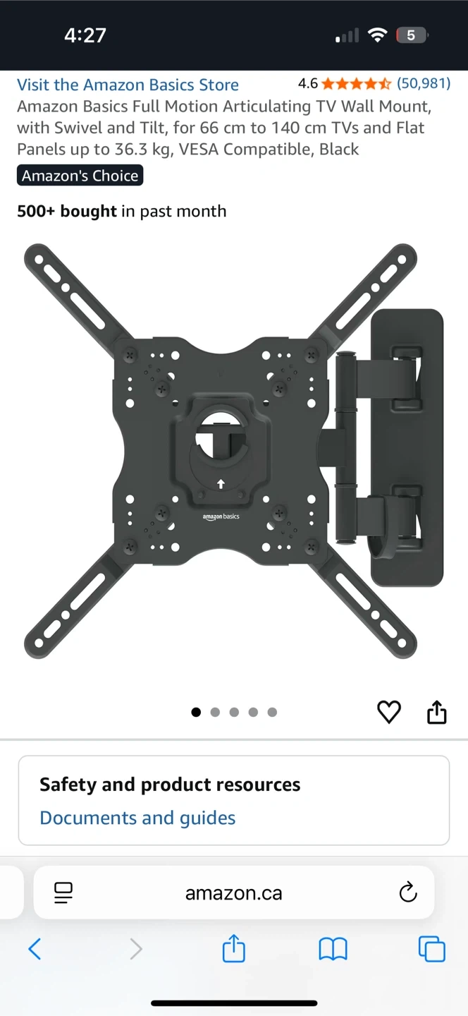 Amazon Basics Full Motion Articulating TV Wall Mount