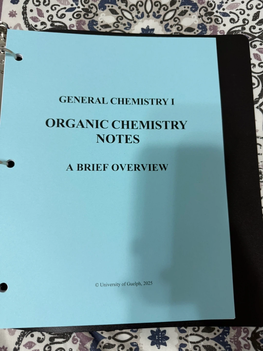 General Chemistry I and Organic Chemistry Notes. A brief overview prepared for University of Guelph, 2025.